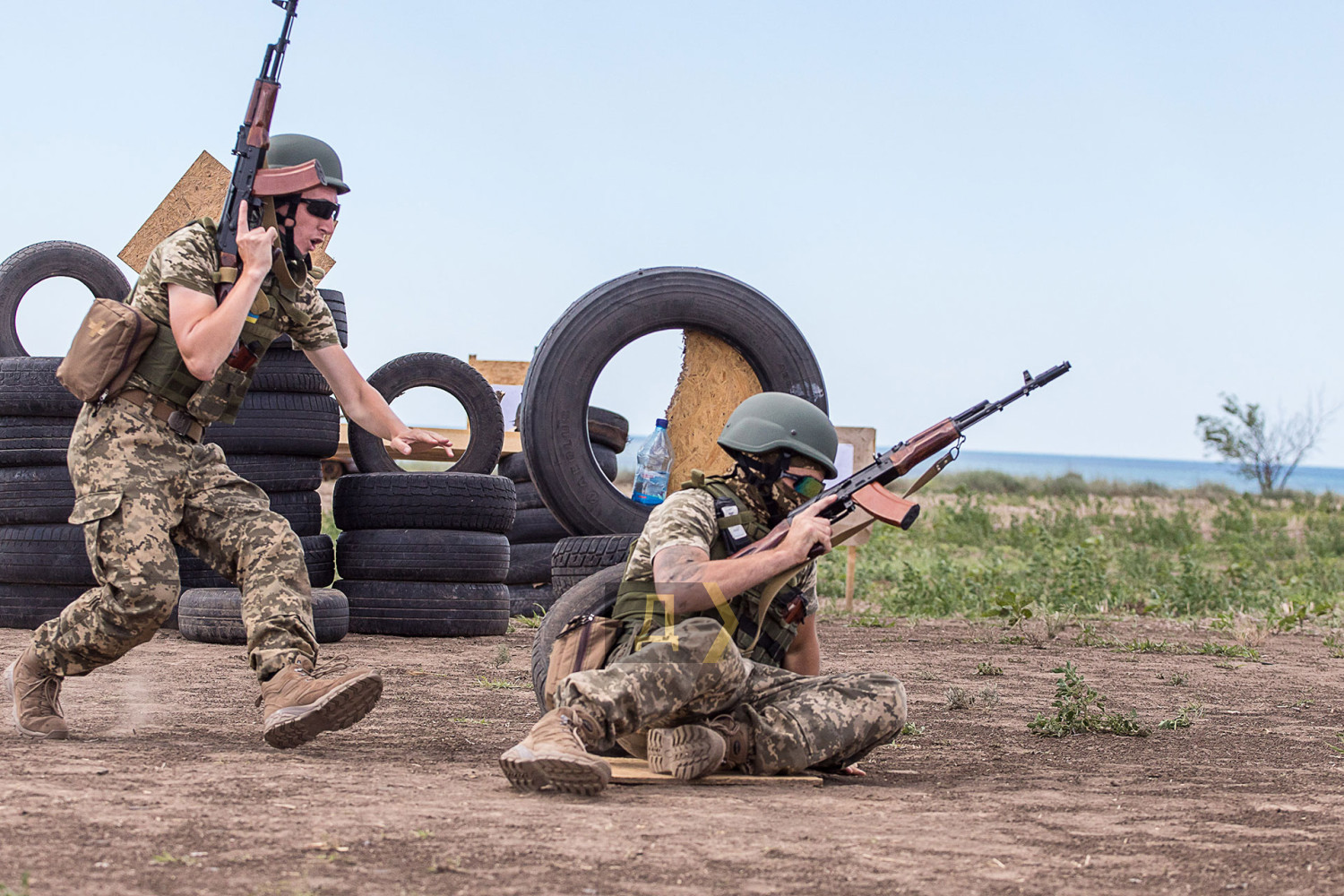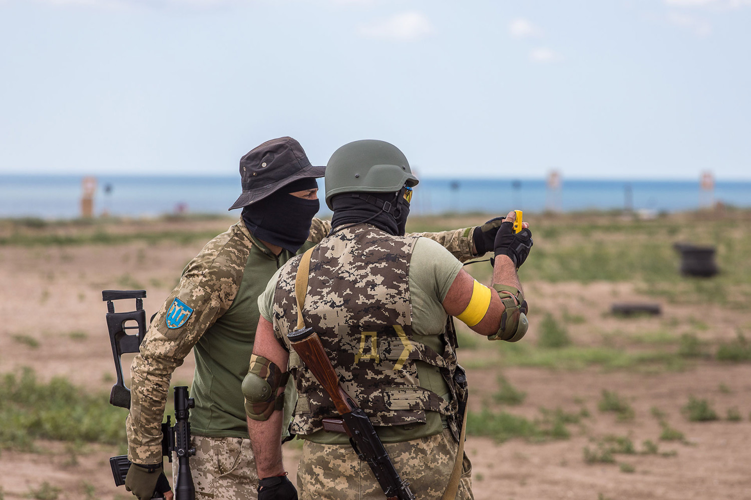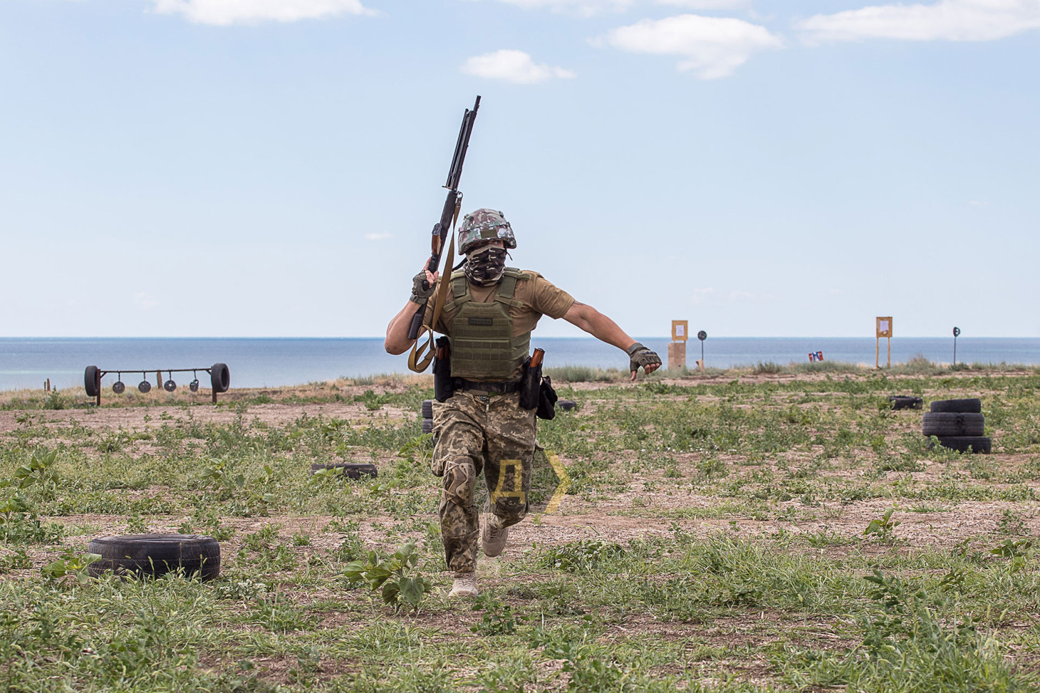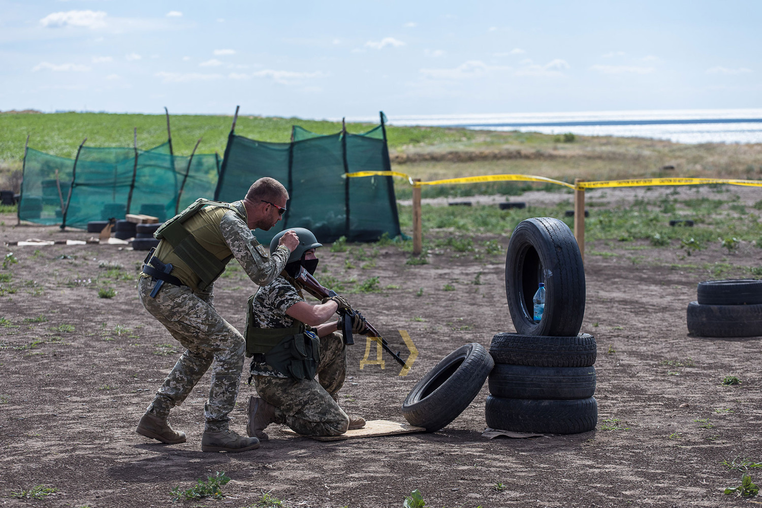 Один из районов Одесской области. На берегу установлены мишени, в качестве укрытий — автомобильные покрышки. Неподалеку ржавеет остов сожженной иномарки. Мы на одном из полигонов, где тренируются военнослужащие 126-й отдельной бригады территориальной обороны Вооруженных сил Украины. Сегодня здесь отрабатывают свои тактические навыки штурмовые группы. Вчерашние менеджеры, повара, портовые работники и журналисты оттачивают мастерство владения стрелковым оружием и улучшают боевое слаживание — так это действо называют военные. Людей абсолютно разных профессий объединяет одно желание — защищать родную землю от вторжения оккупанта. «Наша бригада была сформирована в первые дни полномасштабной войны, — рассказывает представитель службы по связям с общественностью 126-й бригады ТрО с позывным Монах. — Это в большей степени гражданские люди, которые приняли решение защищать страну, очень мотивированные военнослужащие. Наша бригада уже выполняет боевые задачи на фронте, и подготовка всех структурных подразделений проходит, как говорится, 24 на 7. Сегодня мы отрабатываем штурмовые действия с применением стрелкового оружия и гранат. Военнослужащие движутся по импровизированной полосе препятствий, прикрывая друг друга, не дают условному противнику высунуть нос, поражая цели плотным и точным огнем. Старшие побратимы делятся навыками и боевым опытом, сопровождая подразделения по полигону. Чуть поодаль тренируются снайперы. По словам военнослужащего с позывным Аскор, довольно сильный ветер, дующий на полигоне, только на руку метким стрелкам. «Погода для тренировки отличная, — говорит боец и демонстрирует свое оружие, слегка модернизированную снайперскую винтовку Драгунова: так называемые затыльники и щечка на прикладе регулируются под стрелка любой комплекции. — Чем больше ветер, тем лучше мы учимся работать с ним. Мы меняем позиции, сектора, чтобы получить навык работать с разных направлений. Сейчас мы набиваем руки и глаз на этой системе. Это хорошая винтовка, и у врага такая же система. Начинать учиться надо от простого к сложному, позже перейдем на современные иностранные аналоги». Кроме сухих щелчков стрелкового оружия, на полигоне раздаются взрывы. Бойцы штурмового подразделения учатся уничтожать противника гранатами из окопа. Из оврага, где расположена условная цель для метания гранат, поднимаются клубы черного дыма и даже вылетают небольшие осколки. «Я успел послужить еще в советской армии, — делится бывший портовый работник с позывным Дед. В первые дни полномасштабной войны мужчина записался сначала в добровольческий отряд помощи полиции, а потом в свежесозданную 126-ю бригаду ТрО. – Я не думал, что мне придется защищать страну, и готовился встретить старость с внуками, но после 24 февраля понял, что должен сделать все возможное, чтобы остановить оккупантов. У нас очень хороший коллектив и командиры, которые учат, как выживать на поле боя и наносить противнику максимальный урон. А это самое главное». Среди военнослужащих 126-й бригады теробороны есть уже первые орденоносцы. Бойца с позывным Кир наградили орденом «За мужество» III степени. Воин получил ранение, но не оставил поле боя и личным примером вдохновил товарищей по оружию. Он передал координаты вражеской БМП, которая обстреливала украинское подразделение, и 