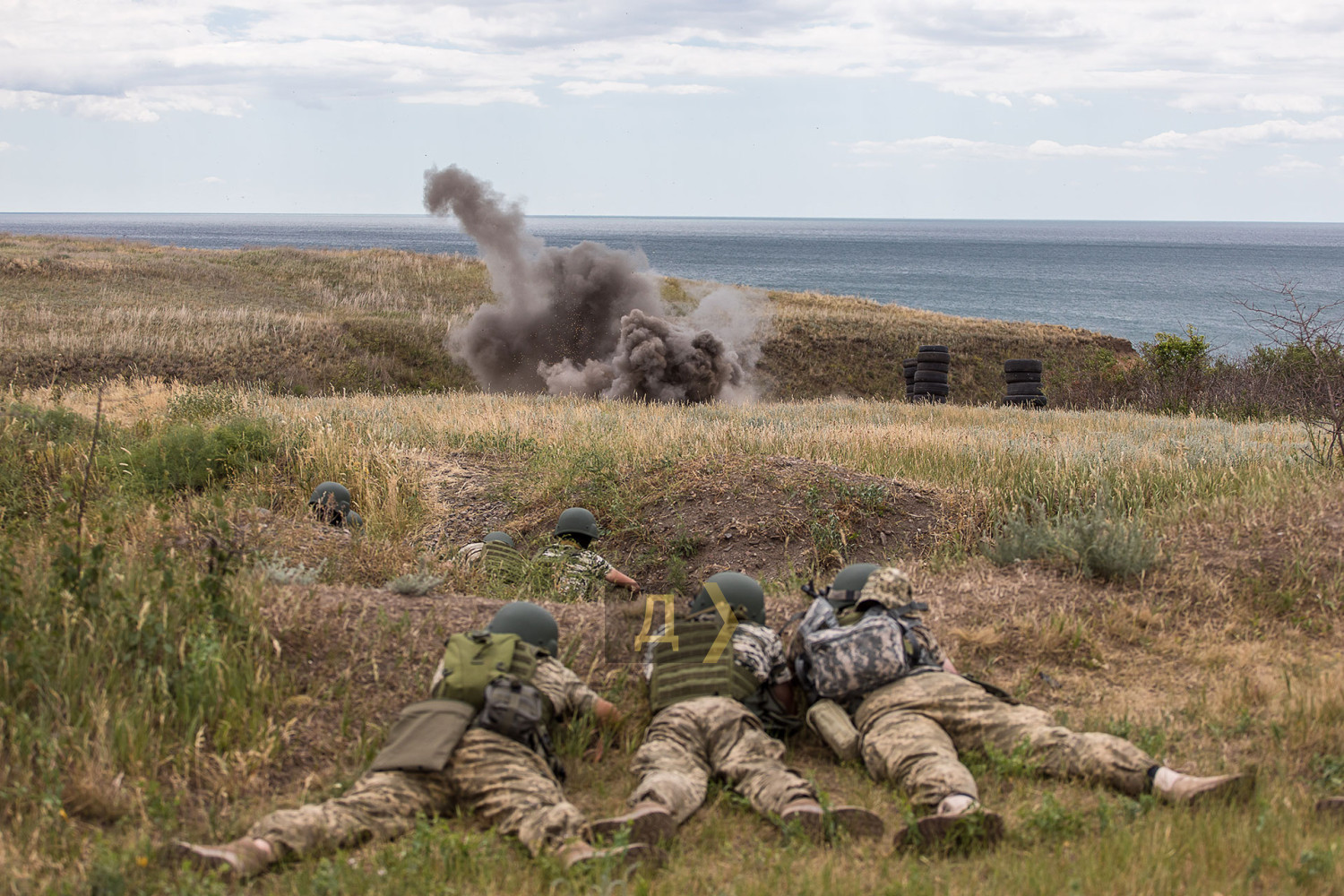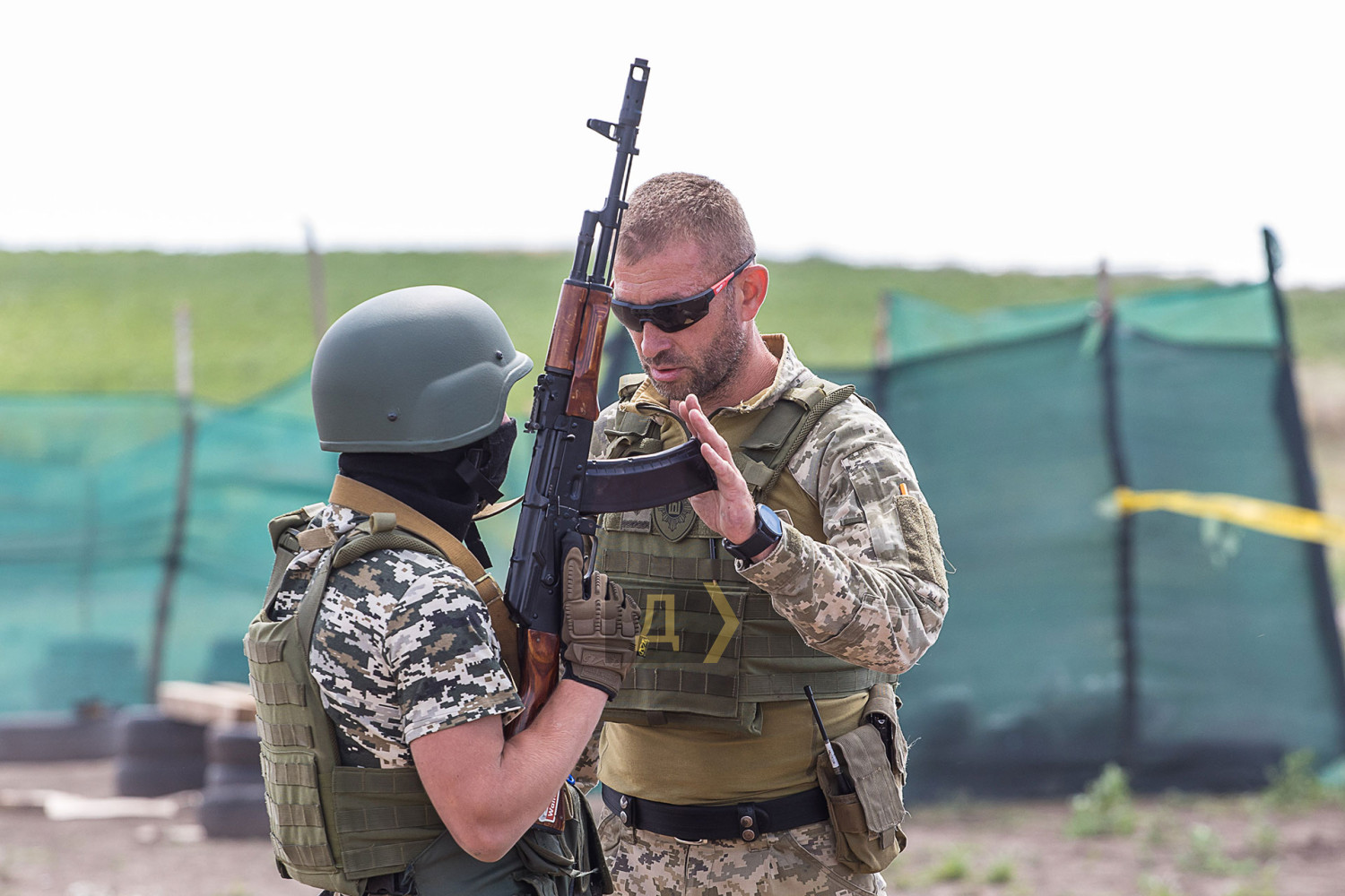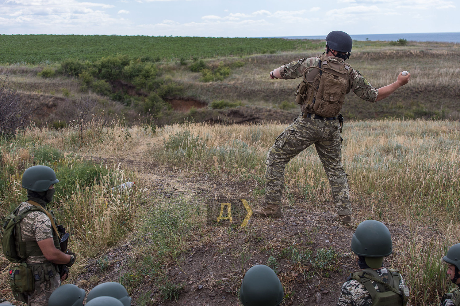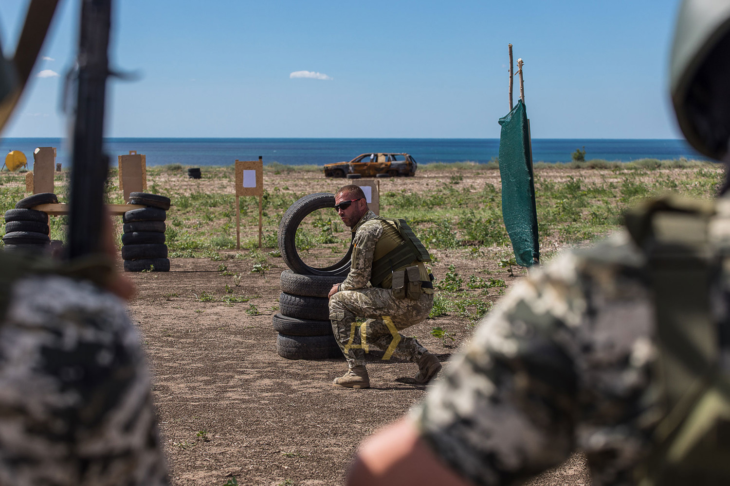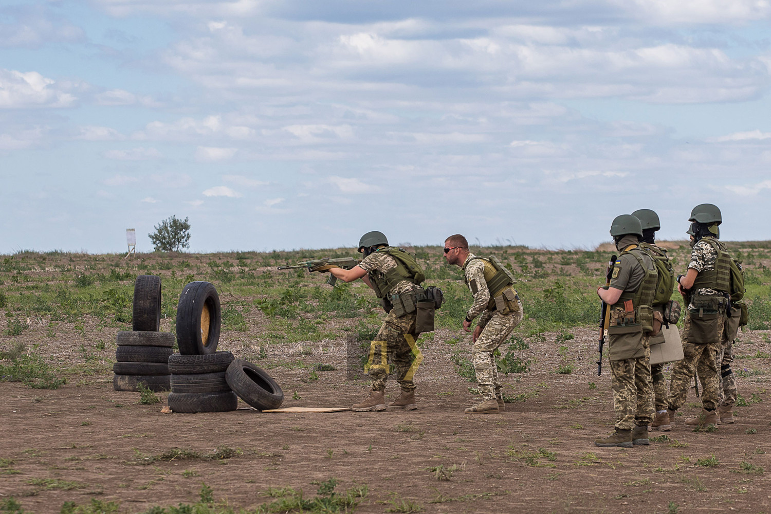 Один из районов Одесской области. На берегу установлены мишени, в качестве укрытий — автомобильные покрышки. Неподалеку ржавеет остов сожженной иномарки. Мы на одном из полигонов, где тренируются военнослужащие 126-й отдельной бригады территориальной обороны Вооруженных сил Украины. Сегодня здесь отрабатывают свои тактические навыки штурмовые группы. Вчерашние менеджеры, повара, портовые работники и журналисты оттачивают мастерство владения стрелковым оружием и улучшают боевое слаживание — так это действо называют военные. Людей абсолютно разных профессий объединяет одно желание — защищать родную землю от вторжения оккупанта. «Наша бригада была сформирована в первые дни полномасштабной войны, — рассказывает представитель службы по связям с общественностью 126-й бригады ТрО с позывным Монах. — Это в большей степени гражданские люди, которые приняли решение защищать страну, очень мотивированные военнослужащие. Наша бригада уже выполняет боевые задачи на фронте, и подготовка всех структурных подразделений проходит, как говорится, 24 на 7. Сегодня мы отрабатываем штурмовые действия с применением стрелкового оружия и гранат. Военнослужащие движутся по импровизированной полосе препятствий, прикрывая друг друга, не дают условному противнику высунуть нос, поражая цели плотным и точным огнем. Старшие побратимы делятся навыками и боевым опытом, сопровождая подразделения по полигону. Чуть поодаль тренируются снайперы. По словам военнослужащего с позывным Аскор, довольно сильный ветер, дующий на полигоне, только на руку метким стрелкам. «Погода для тренировки отличная, — говорит боец и демонстрирует свое оружие, слегка модернизированную снайперскую винтовку Драгунова: так называемые затыльники и щечка на прикладе регулируются под стрелка любой комплекции. — Чем больше ветер, тем лучше мы учимся работать с ним. Мы меняем позиции, сектора, чтобы получить навык работать с разных направлений. Сейчас мы набиваем руки и глаз на этой системе. Это хорошая винтовка, и у врага такая же система. Начинать учиться надо от простого к сложному, позже перейдем на современные иностранные аналоги». Кроме сухих щелчков стрелкового оружия, на полигоне раздаются взрывы. Бойцы штурмового подразделения учатся уничтожать противника гранатами из окопа. Из оврага, где расположена условная цель для метания гранат, поднимаются клубы черного дыма и даже вылетают небольшие осколки. «Я успел послужить еще в советской армии, — делится бывший портовый работник с позывным Дед. В первые дни полномасштабной войны мужчина записался сначала в добровольческий отряд помощи полиции, а потом в свежесозданную 126-ю бригаду ТрО. – Я не думал, что мне придется защищать страну, и готовился встретить старость с внуками, но после 24 февраля понял, что должен сделать все возможное, чтобы остановить оккупантов. У нас очень хороший коллектив и командиры, которые учат, как выживать на поле боя и наносить противнику максимальный урон. А это самое главное». Среди военнослужащих 126-й бригады теробороны есть уже первые орденоносцы. Бойца с позывным Кир наградили орденом «За мужество» III степени. Воин получил ранение, но не оставил поле боя и личным примером вдохновил товарищей по оружию. Он передал координаты вражеской БМП, которая обстреливала украинское подразделение, и 