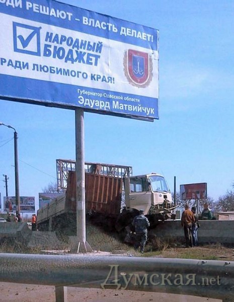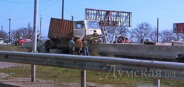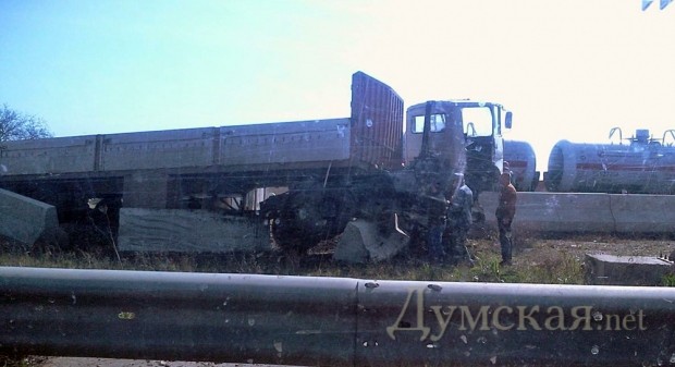 Сегодня утром на Ильичёвской трассе под Одессой — между переездом и развилкой на Рыбпорт — произошло крупное ДТП. Автомобиль Камаз, гружённый бетонными блоками, выехал за пределы проезжей части, зацепил по касательной легковой автомобиль и залетел на бетонные отбойники. По словам очевидцев в результате аварии никто не пострадал. «Думская» выясняет подробности инцидента. Помітили помилку? Виділяйте слова з помилкою та натискайте control-enter |