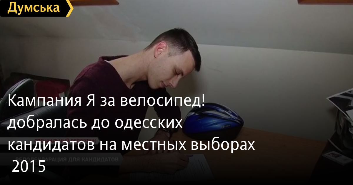 Кампания «Я за велосипед!» добралась до одесских кандидатов на местных выборах – 2015«Я за велосипед!» — всеукраинская акция с таким названием стартовала в нашем городе. Общественники призывают кандидатов в депутаты и в мэры подписать декларацию о развитии велоинфраструктуры. Первыми свои подписи поставили кандидаты от партии «Солидарность» Блок Петра Порошенко. Подробности в материале Юлии Пробачай. СМЕРТЬ РОССИЙСКИМ ОККУПАНТАМ! Заметили ошибку? Выделяйте слова с ошибкой и нажимайте control-enter Думская ТВ. Сюжеты: