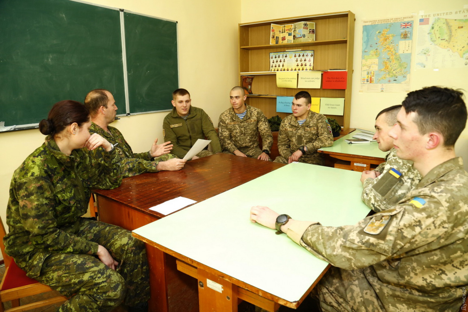 Канадские преподаватели помогают курсантам Военной академии Одессы подтянуть английский и французский языкиПрактические занятия по изучению иностранного языка с участием военнослужащих Канадских вооруженных сил проходят в Военной академии Одессы. Как сообщили в Минобороны, курсанты вуза и офицеры-слушатели интенсивных языковых курсов имеют возможность подтянуть английский и французский языки, свободно общаясь с их носителями. По словам заместителя начальника кафедры иностранных языков академии Людмилы Гайошко, занятия проводятся с малыми группами, что дает возможность канадским военным преподавателям стимулировать заинтересованность, побуждать к учебной деятельности, активно использовать потенциал межличностного контакта, используя элементы дискуссии. СМЕРТЬ РОСІЙСЬКИМ ОКУПАНТАМ! Помітили помилку? Виділяйте слова з помилкою та натискайте control-enter Новини по цій темі: 28 червня 2025: Одеський інститут Військово-морських сил випустив молодих лейтенантів флоту: найкращою вперше стала дівчина (фото, відео) 19 червня 2025: Командував обороною Одеси та всього півдня України: Сухопутні війська очолив бойовий генерал-танкіст з американською освітою 30 червня 2025: Жінка на кораблі: одеська курсантка несла вахту на авіаносці і вижила на смузі для «суперменів» (фото, відео) |