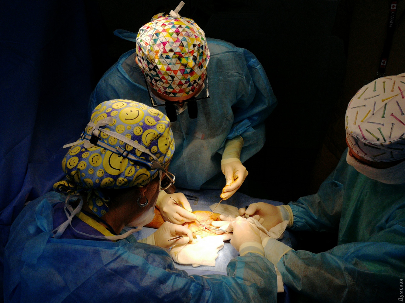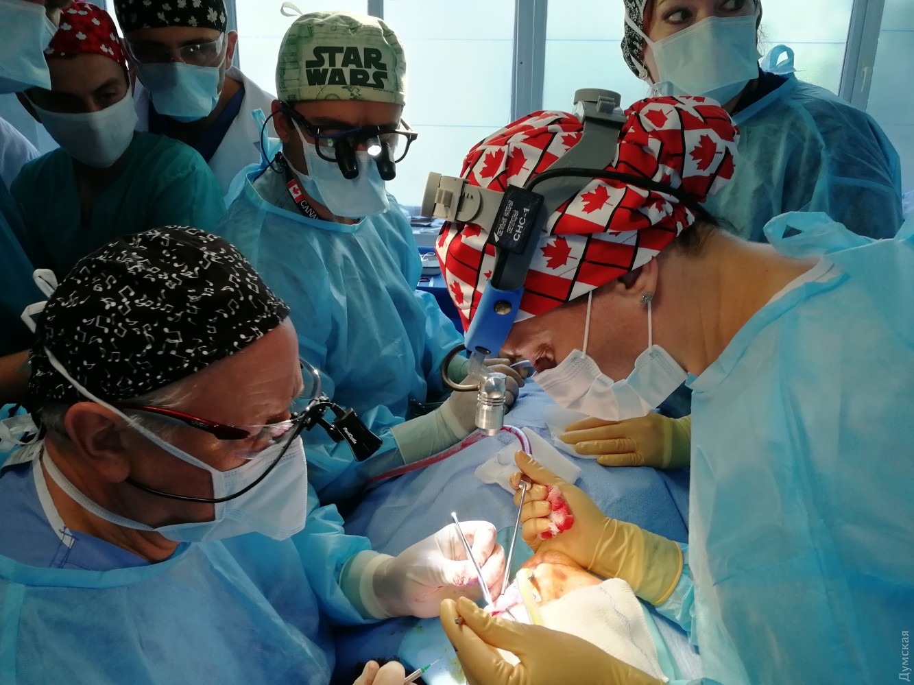 В Одессе канадские пластические хирурги делают операции украинским воинам, получившим ранения на фронтеМиссия канадских врачей в шестой раз прибыла в Украину, чтобы помочь раненым участникам Антитеррористической операции и активистам Майдана. Вместе с украинскими коллегами они проводят бесплатные пластические операции на базе Военно-медицинского клинического центра Южного региона в Одессе. Как передает корреспондент «Думской», в первые дни канадские специалисты провели предварительный отбор и проконсультировали свыше 60 раненых военнослужащих, из которых 30 после тщательных диагностических исследований были госпитализированы для устранения посттравматических черепно-лицевых деформаций, дефектов мягких тканей и рубцов. По словам руководителя программы черепных травм Саннибрукского научного центра здоровья, профессора пластической хирургии университета Торонта Олега Антонишина, с канадской стороны в миссии задействованы челюстно-лицевые хирурги, нейрохирурги, травматологи, пластические хирурги, анестезиологи, а также средний медицинский персонал. «Среди наших пациентов очень много тех, кто впервые обратился за помощью, но есть и люди, которые проходили лечение во время первых пяти миссии, а сейчас принимают участие в следующем этапе реконструкции последствий своих ранений, — отметил начальник клиники челюстно-лицевой хирургии и стоматологии Главного военного клинического госпиталя Минобороны Украины полковник медслужбы Игорь Федирко. В течение всей миссии оперативные вмешательства проводятся совместными бригадами украинских и канадских врачей. «Медицинский персонал нашей клиники имеет богатый опыт оказания помощи пострадавшим от последствий огнестрельных ранений и минно-взрывных травм, — заявил начальник клиники челюстно-лицевой хирургии и стоматологии одесского госпиталя Виктор Мазур. – Но сейчас у нас есть возможность ознакомиться более детально с мировым опытом проведения операций на костях и мягких тканях головы, а также верхних и нижних конечностей тела. Прием пациентов в Военно-медицинском клиническом центре Южного региона продолжится до 25 мая. Необходимо лишь обратиться по горячей линии 097 95 25 032, и координатор примет всю информацию. Если пациент не имеет возможности заплатить за дорогу в Одессу, ему выделят средства. За пять предыдущих миссий канадские хирурги прооперировали 177 пациентов и проконсультировали еще 400. Главный военный клинический госпиталь в Виеве получил оборудование стоимостью 700 тысяч канадских долларов: цифровой рентген, современный операционный стол, наборы специализированного хирургического инструментария и так далее. Шестую миссию финансирует фонд «Stryker Canada» и украинские организации Канады – Лига украинок Канады, Ассоциация канадских украинских ветеранов и «Зал Дніпро». Автор – Евгений Силкин, специально для «Думской». СМЕРТЬ РОСІЙСЬКИМ ОКУПАНТАМ! Помітили помилку? Виділяйте слова з помилкою та натискайте control-enter |