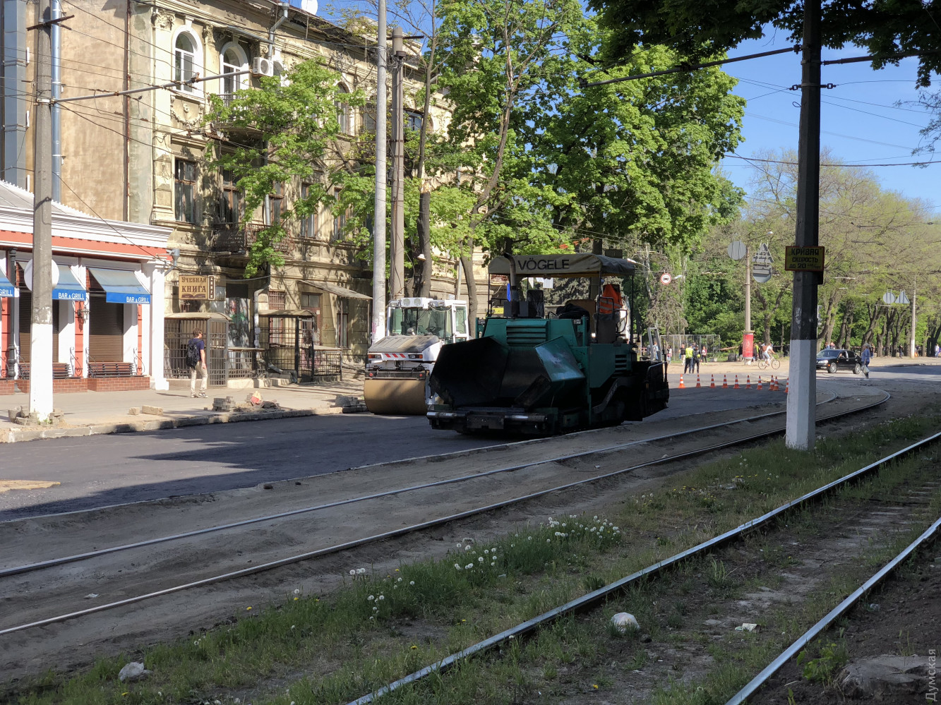 Дорожники приступили к укладке асфальта на участке Канатной улицы от Пироговской до Семинарской, который был перекрыт с 1 марта из-за реконструкции теплосетей.