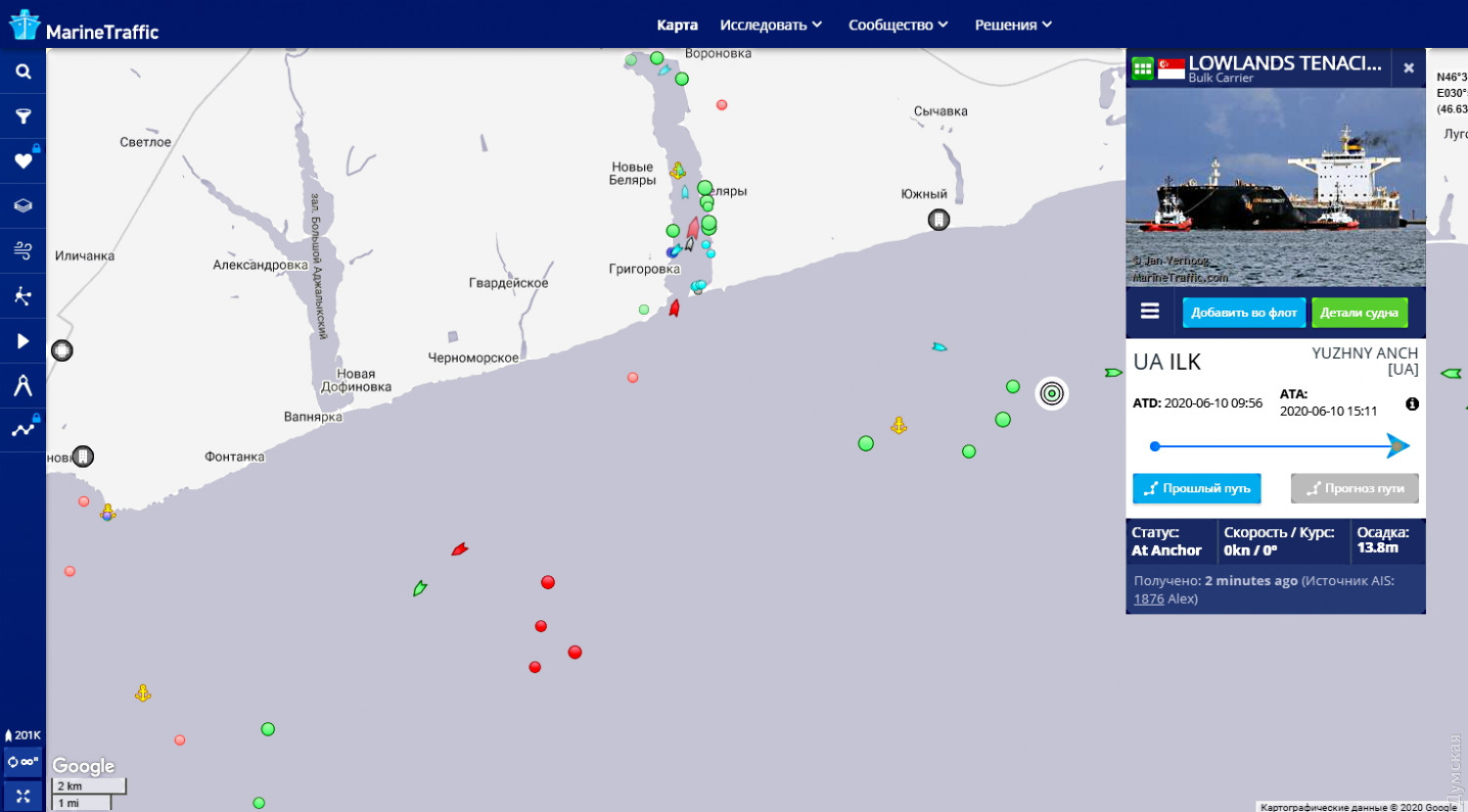 Капитан корабля подтвердил факт промывки трюмов и сброса в море остатков бокситов и забортной воды. Отметим, что для промывки такого судна необходимо около 100 тонн морской воды и соответствующие химические реактивы. Хотя по результатам экспертизы опасных для природной среды веществ в отобранных образцах не обнаружили, капитана все равно привлекли к административной ответственности за загрязнение в исключительной (морской) экономической зоне Украины. Сейчас судно находится на якорной стоянке вблизи порта Южный. По данным «Думской», речь идет о 292-метровом балкере LOWLANDS TENACITY (IMO 9586801).