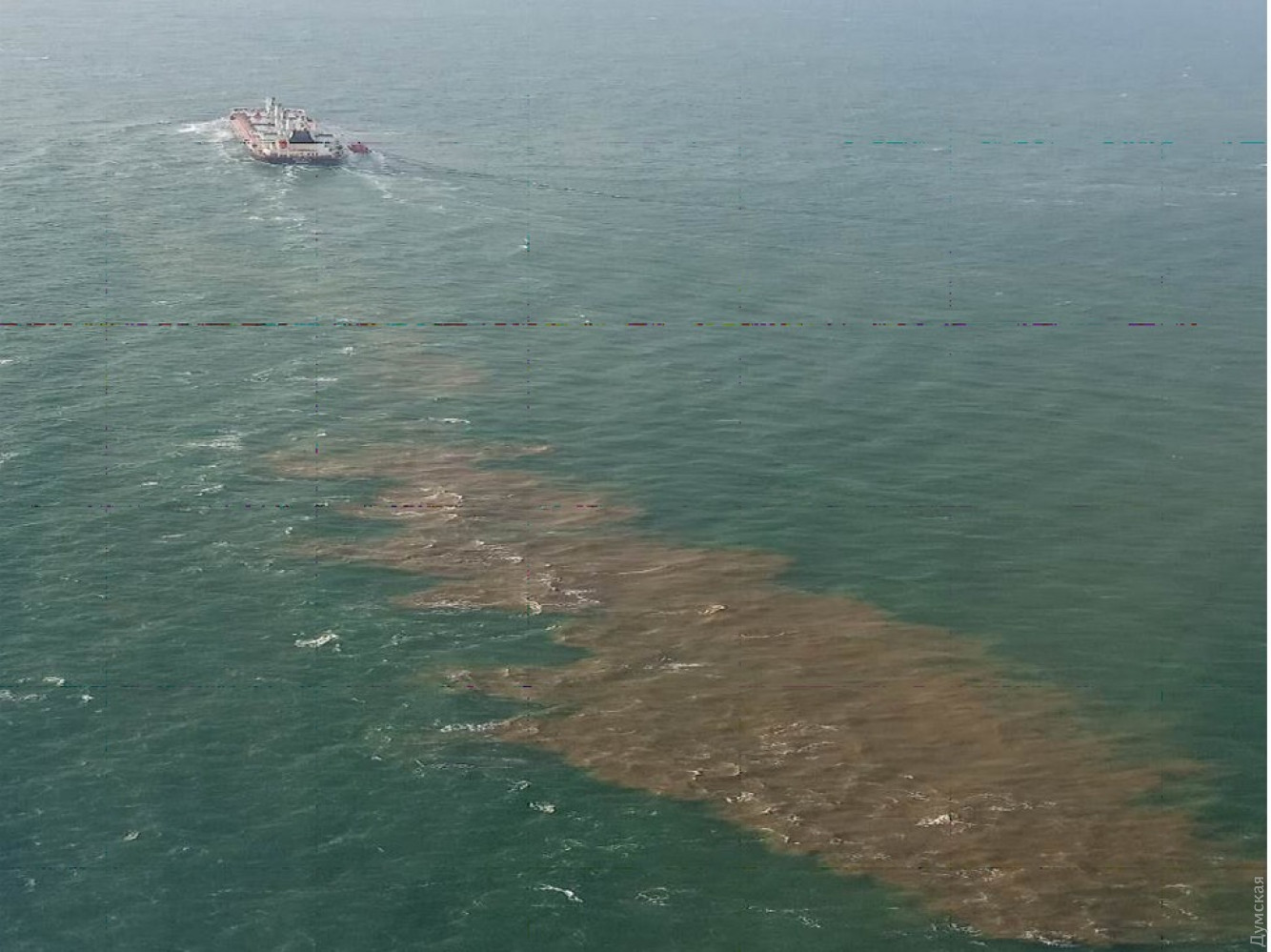 Видел как этот черт еще в понедельник в порту Ильичевска при погрузке/разгрузке сливал воду(в районе выхода якорных цепей) в гавань. Далек от этого, подумал что так и надо.