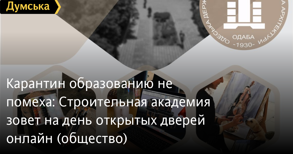 Карантин образованию не помеха: Строительная академия зовет на день открытых дверей онлайн (общество)День открытых дверей пройдет в Одесской государственной академии строительства и архитектуры уже в эту пятницу, 15 мая, в 11:00. В этот раз с работой вуза можно будет ознакомиться онлайн. Все зарегистрировавшиеся по ссылке узнают актуальные правила поступления в академию, смогут задать вопросы директорам институтов, выбрать специальность для дальнейшего обучения. СМЕРТЬ РОССИЙСКИМ ОККУПАНТАМ! Заметили ошибку? Выделяйте слова с ошибкой и нажимайте control-enter Новости по этой теме: 28 сентября 2024: Восстановление поврежденных зданий и дефицит кадров: ученые обсудили перспективы развития строительного комплекса Одессы (фото) 25 сентября 2024: С покет-парком и граффити-стеной: студенты строительной академии восстановят самую суровую баскетбольную площадку Одессы 15 ноября 2023: В центре Одессы откроют музей геноцидов «Территория памяти»: концепт разрабатывают студенты и преподаватели строительной академии (фото) |