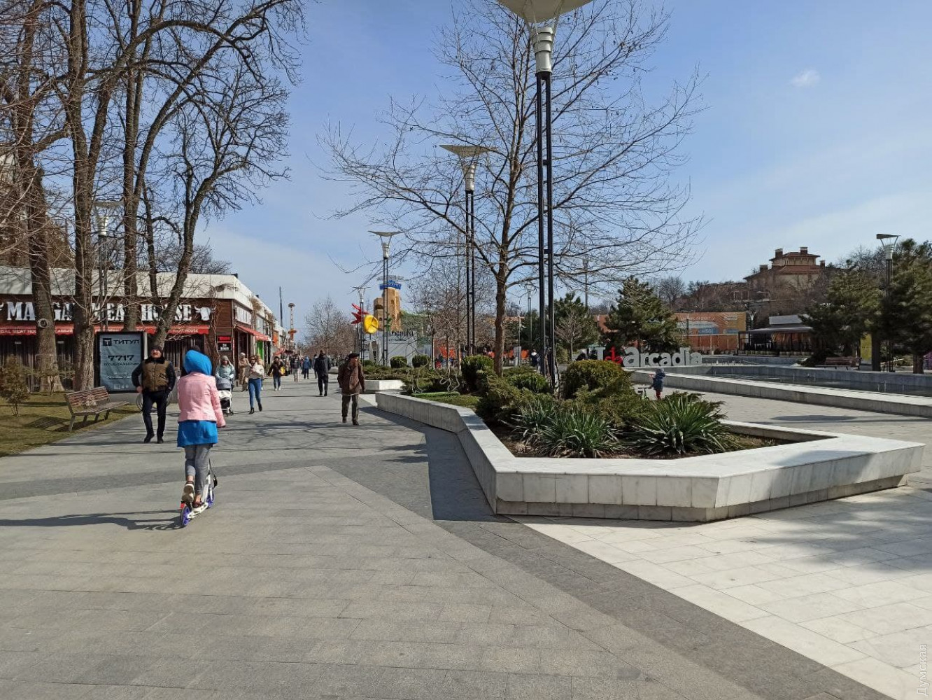 Еще одна весна в Одессе проходит в режиме жесткого карантина. Хорошо еще, что у нас есть море, небольшой запас оптимизма и Аркадия. Сегодня там было довольно безлюдно и по-домашнему, передает корреспондент «Думской».