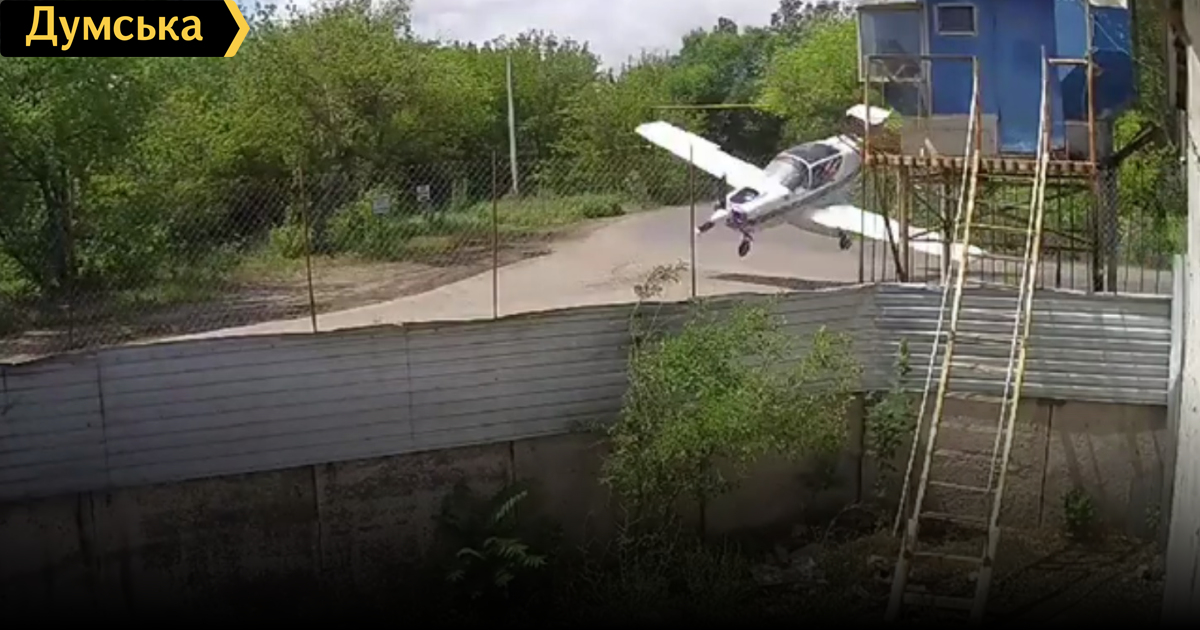 В распоряжении «Думской» оказалась видеозапись с камеры наружного наблюдения, на которой запечатлен момент падения самолета «Дельфин», принадлежащего Одесскому авиазаводу.