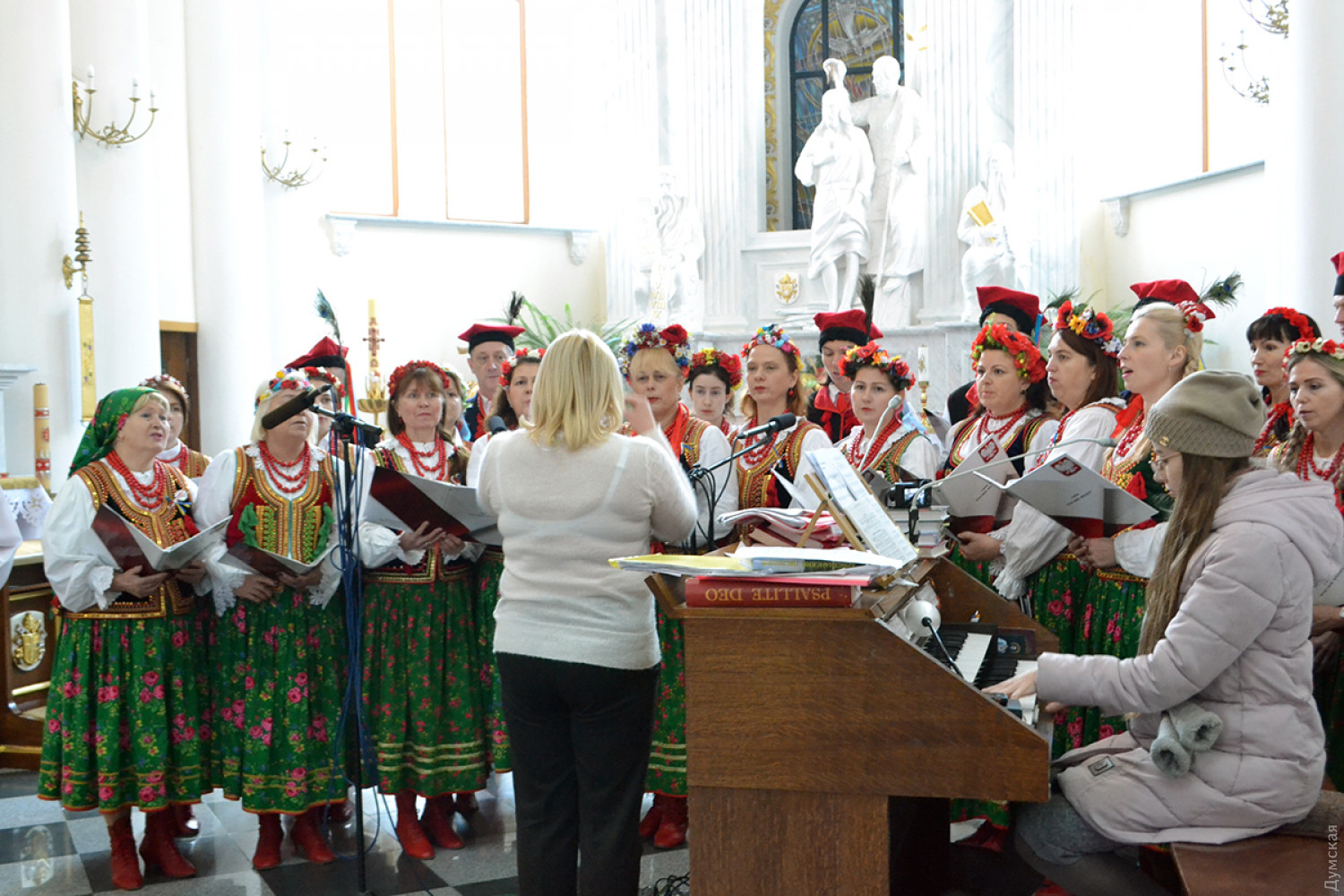 Цитата из статьи «Священники молились за Украину, славили Иисуса Христа. Играл орган, пел польский хор.» конец цитаты. Автору хор был не польский. Хор как в данном случае, в главном католическом соборе Одесско-Симферопольской диецезии (управления) состоит из прихожан знающих польский язык, и умеющие хорошо петь. Равно как и в других приходах\церквях. Еще на Праздники приглашают петь студентов-вокалистов из Одесской национальной консерватории, и голоса у девочек ангельские. Аж, мурашки по коже. Кстати костел Святого Петра на Гаваной был единственным работающим костелом в брежневские времена. Интуристы приходившие в Одессу на судах ЧМП, привозились в этот костел на службы. Многие коренные жители центральной части города являются прихожанами этого костела, правда со временем их становиться все меньше и меньше.