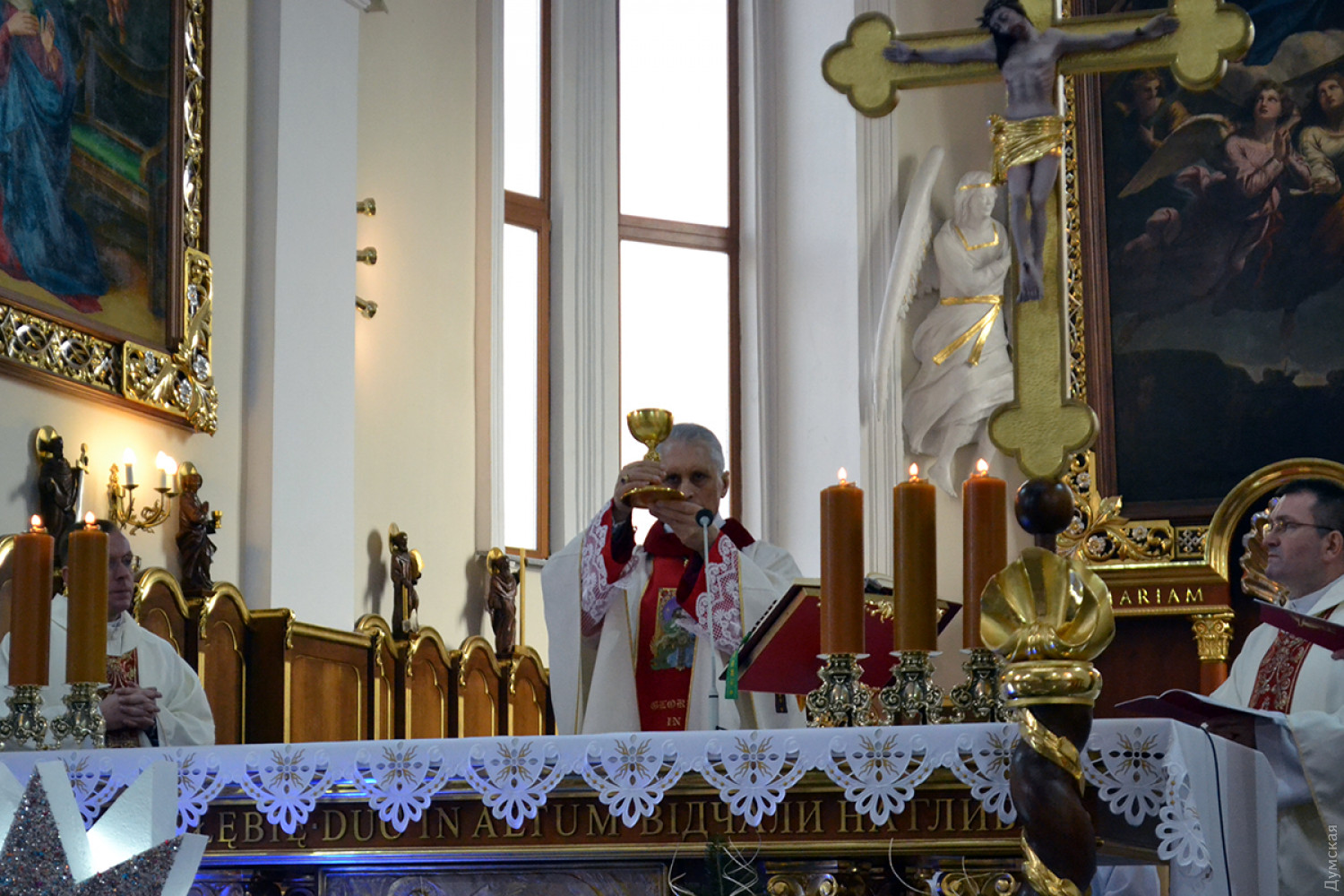 В кафедральном католическом соборе Успения Пресвятой Богородицы Девы Марии, что на Екатерининской, служат на трех языках.