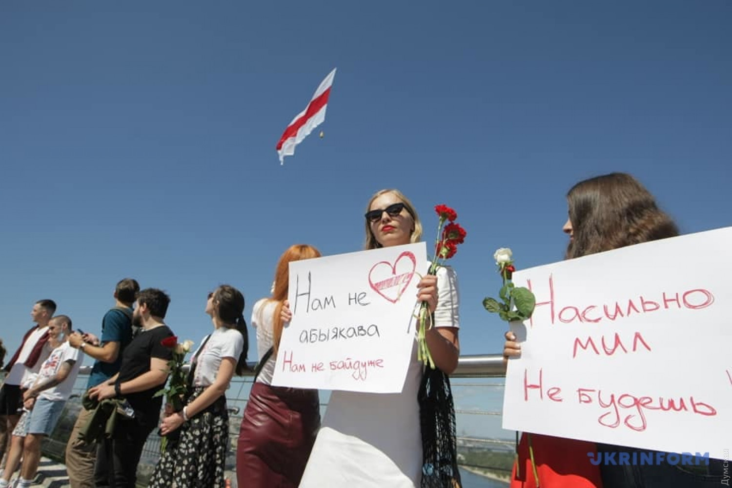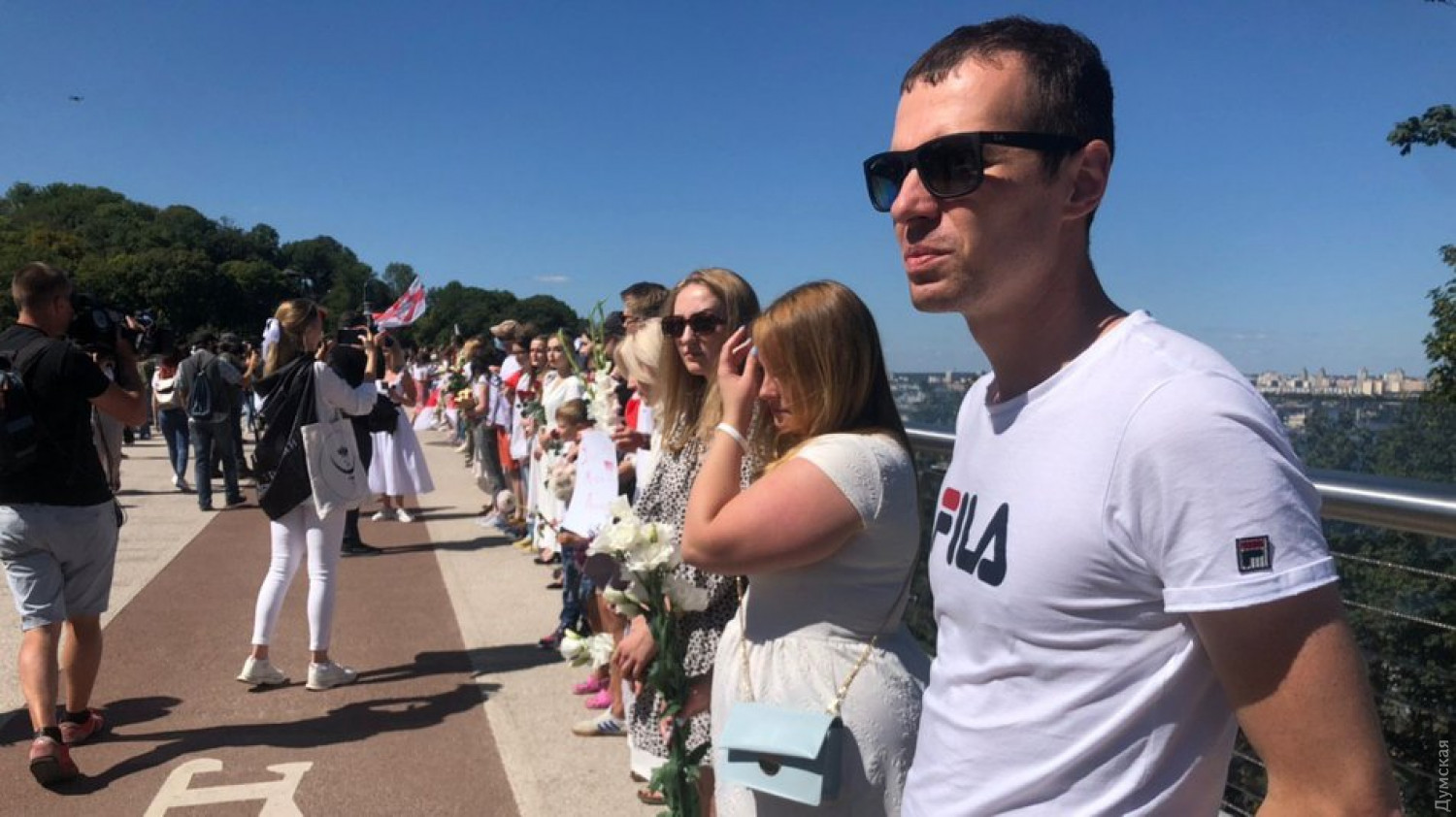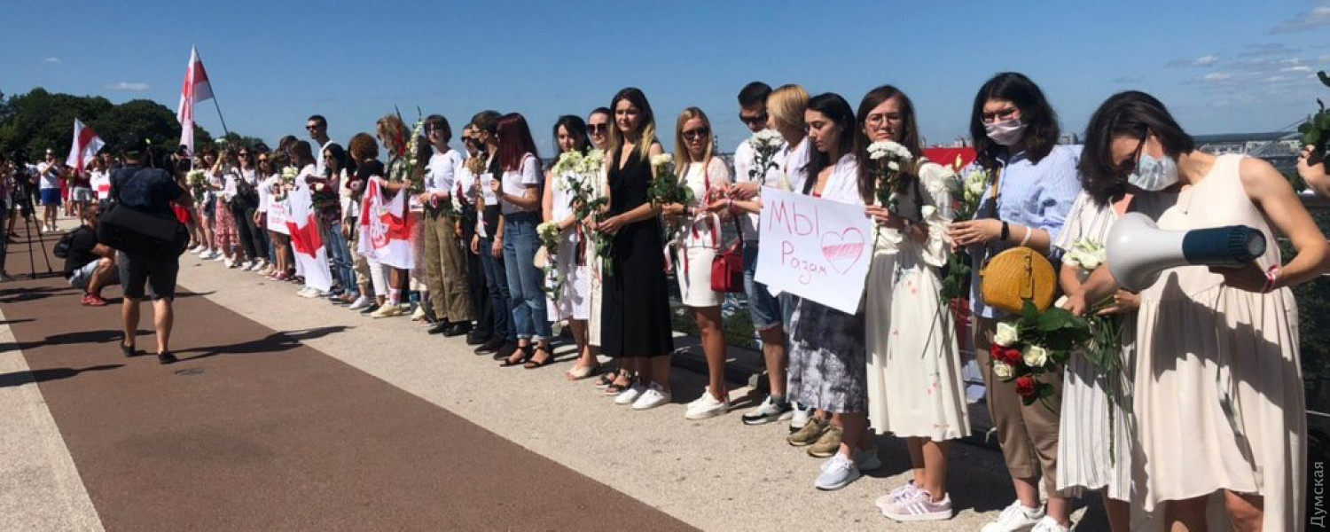 Жители украинской столицы выстроились в «цепь солидарности» на прогулочном мосту рядом с Аркой дружбы народов. В акции приняли участие более сотни киевлян, одетых в белые одежды — символ белорусской оппозиции. В знак скорби по погибшим и травмированным во время протестов участники акции повязали себе на руки черные ленты. Организаторы мероприятия заявили, что выступают за демократические выборы в Беларуси. Напомним, в городах Беларуси проходят схожие мирные акции. Возмущенные подтасовкой результатов выборов белорусы выходят на улицы и выстраиваются в живые цепи. фото, видео Суспільне новини