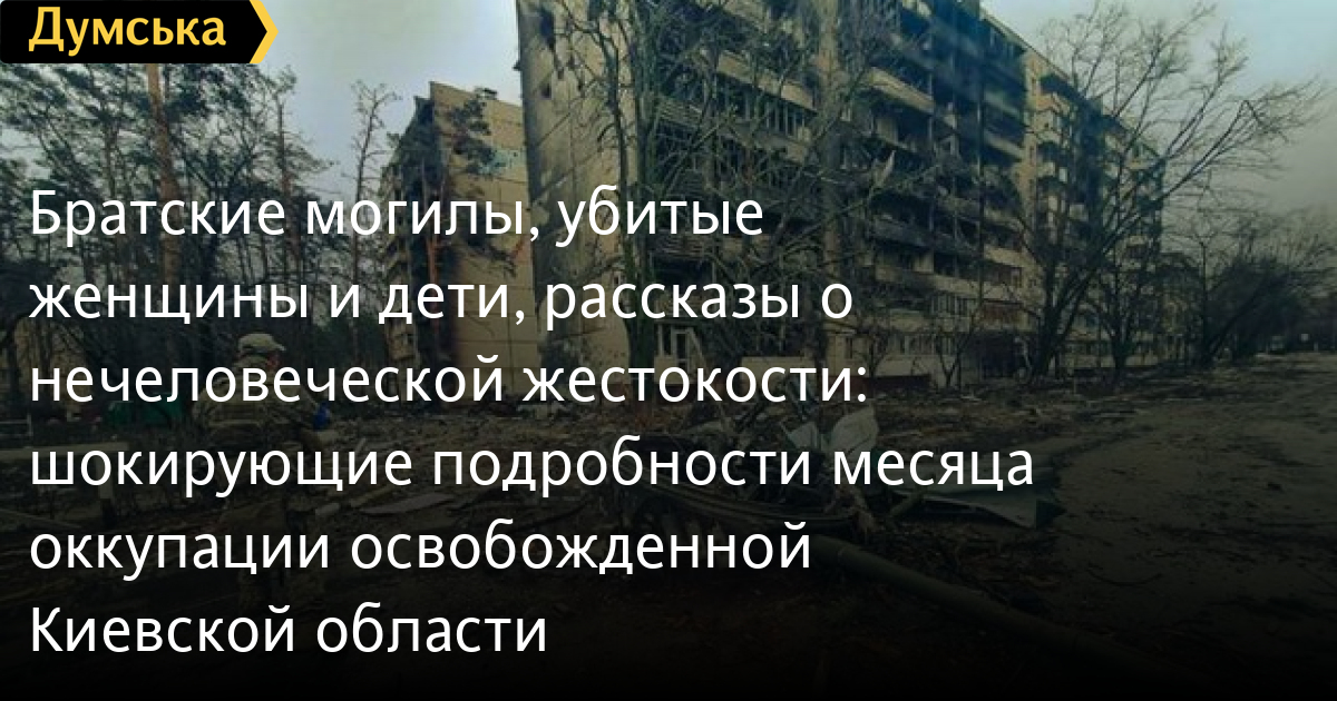 Братские могилы, убитые женщины и дети, рассказы о нечеловеческой жестокости: шокирующие подробности месяца оккупации освобожденной Киевской областиВторое апреля, по всей видимости, станет государственным праздником — днем освобождения Киевщины от российских захватчиков. Вчера территорию Киевской области окончательно освободили от оккупантов, сообщила заместитель министра обороны Украины Анна Маляр. По версии кремля, это произошло в результате «плановой передислокации». Но мы знаем, что они просто убежали на территорию беларуси, чтобы не оказаться захлопнутыми в грандиозном котле. Количество пленных и брошенной техники — наглядное тому подтверждение. Россияне начали вторжение в первый день масштабной войны, и больше тридцати дней украинские граждане, которые не успели эвакуироваться, оказались в настоящем аду, о котором раньше они читали разве что в учебниках истории и книгах об ужасах Второй мировой. Сейчас, после позорного бегства захватчиков, перед всем миром разворачивается страшная картина, которая тоже войдет в учебники истории и - мы уверены! — в приговоры международных трибуналов. Настоящее лицо «русского мира», которое увидели жители уютных городов и поселков Киевской области, потрясает и ужасает даже тех, кто видит только кровавые последствия его недолгого воцарения на украинской земле. Похоже, слова об «окончательном решении украинского вопроса», которое кремлевские пропагандисты уже приготовились пускать в мировые медиа, ассоциируются со злодеяниями германских нацистов вполне заслуженно. Освободители населенных пунктов Киевской области находят тела расстрелянных людей, закованных в наручники или со связанными руками. Их убивали выстрелом в голову — точно так, как деды и прадеды оккупантов убивали людей в годы большевицкого террора. Разрушенные и сгоревшие дома — к сожалению, это обычные пейзажи в освобожденных украинских городах. Полуразрушенный уникальный самолет «Мрия» в гостомельском ангаре. Срочники Нацгвардии, которые охраняли Чернобыльскую АЭС и сейчас оказались в плену. Это - «русский мир», который и раньше не особо скрывал свою звериную сущность, а сейчас раскрылся во всей своей зловещей «красе». Сейчас в регионе завершаются рейды по обнаружению и уничтожению противника. А жителям советуют домой пока не возвращаться. Украинские защитники ищут диверсантов и разминируют территорию. Кроме того, власти просят уцелевших жителей не выходить из дому — оккупанты в бессильной злобе повсюду оставляют заминированные здания, предметы, «сюрпризы», мины-ловушки. Мы слышали о таком из рассказов о войне в Афганистане и в Чечне. Сегодня мы воочию видим, как это делает российская армия на нашей земле. Военные заняты обезвреживанием освобожденных территорий, но на полное разминирование могут уйти годы. И, конечно, мародерство. Судя по тому, чем набиты подбитые и брошенные российские танки, БТР, грузовики, они тянут все, что плохо лежит — от нижнего белья и обуви до стиральных машин и холодильников. Угоняют автомобили. Те, кому посчастливилось удрать в беларусь, отправляют домой посылки с наворованным. Женам и детишкам, так сказать, на радость. Похоже, это и есть «русская идея» — приехать в европейскую страну на танке, чтобы грабить. Наши защитники выбили врага из-под Киева, но война продолжается. Ги