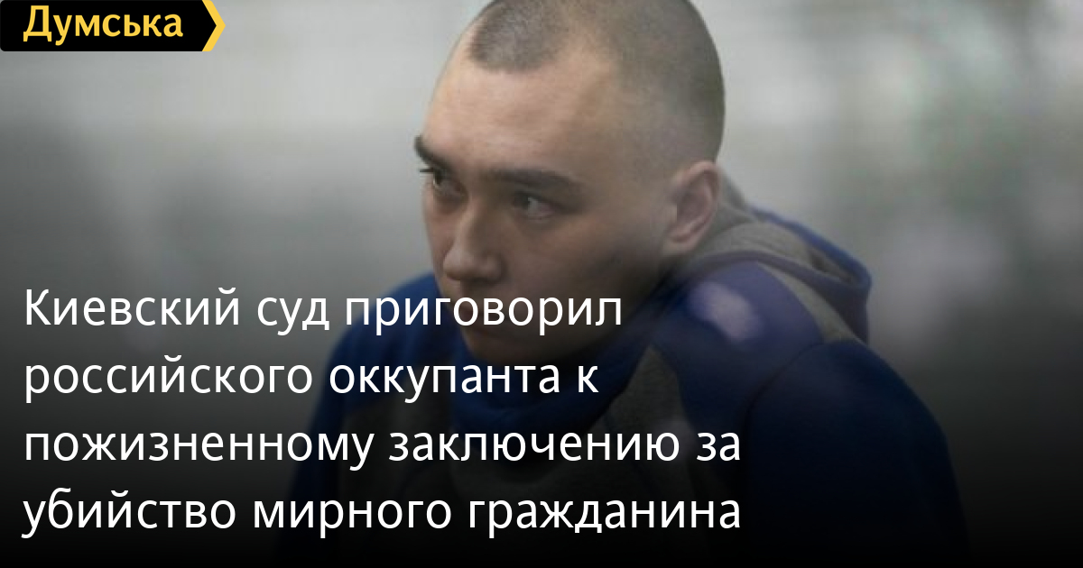 Киевский суд приговорил российского оккупанта к пожизненному заключению за убийство мирного гражданинаСоломенский райсуд Киева приговорил российского военнослужащего, 21-летнего сержанта, командира отделения 4-й гвардейской Кантемировской дивизии Евгения Шишимарина к пожизненному заключению. Коллегия судей вынесла приговор только что. Напомним, Шишимарина обвиняют в убийстве мирного 62-летнего жителя пгт Чупаховка Сумской области. Подсудимый признал свою вину. По данным следствия, житель Иркутской области прибыл в Украину в составе армии рф. Его колонна была разбита военнослужащими Вооруженных сил Украины. Убегая, он с четырьмя сослуживцами обстрелял из автоматов частный автомобиль и угнал его. На украденной машине оккупанты заехали в пгт. Чупаховка Сумской области. По дороге они увидели безоружного жителя села, который шел с велосипедом вдоль обочины и разговаривал по телефону. Шишимарин произвел несколько прицельных выстрелов через открытое окно автомобиля из автомата Калашникова в голову 62-летнего потерпевшего. Мужчина скончался на месте всего в нескольких десятках метров от собственного дома. СМЕРТЬ РОССИЙСКИМ ОККУПАНТАМ! Заметили ошибку? Выделяйте слова с ошибкой и нажимайте control-enter |