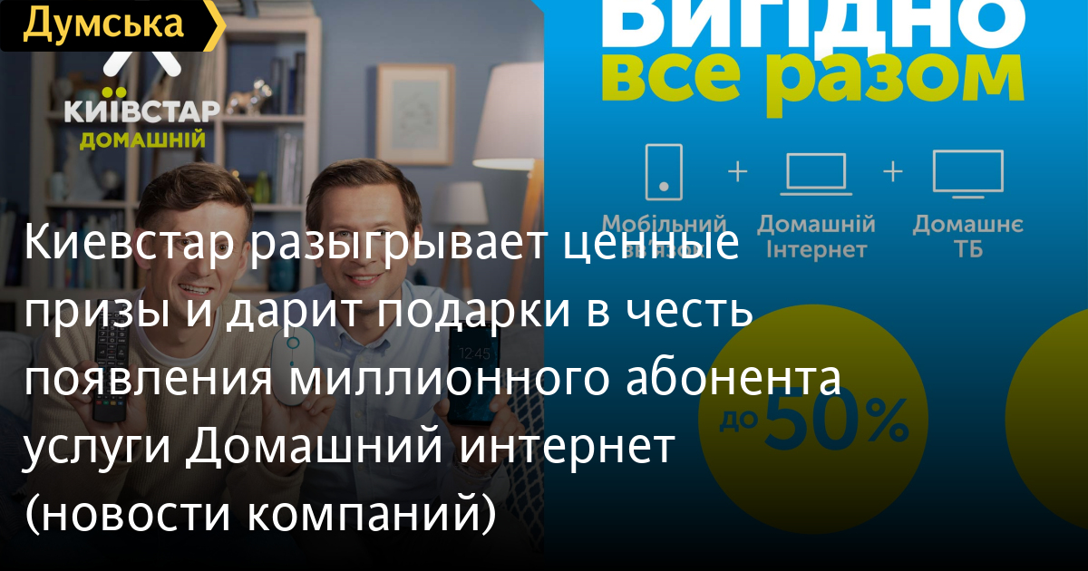 «Киевстар» разыгрывает ценные призы и дарит подарки в честь появления миллионного абонента услуги «Домашний интернет» (новости компаний)Крупнейший оператор мобильной связи Украины «Киевстар» празднует первый миллион подключенных абонентов, которые пользуются домашним интернетом. Юбилейным клиентом стал житель Черкасс Александр Тарасенко. Представители «Киевстар» вручили счастливчику ценные призы — плазменный телевизор, игровой ноутбук и смартфон. Это достаточно символично, ведь каждый из подарков отражает суть тарифной линейки «Все вместе», включающей домашнее телевидение, высокоскоростной домашний интернет и мобильную связь. Как признался счастливчик, подключить домашний интернет от «Киевстар» решил именно благодаря удобству тарифной линейки «Все вместе». «Раньше я платил отдельно за мобильную связь и домашний интернет. Дома у меня был другой провайдер. Но потом решил, что платить за две услуги разным операторам и дороже, и сложнее. Как оказалось, не прогадал, – рассказывает Александр Тарасенко. – Мне повезло. Было очень приятно получить подарки от компании». Поздравляли юбилейного абонента известные украинские актеры и герои рекламной кампании «Киевстар» Дмитрий Ступка и Дмитрий Вивчарюк: «Мы тоже пользуемся услугами «Киевстар». С компанией нас связывает долгое и теплое партнерство, поэтому с радостью поддержали ребят в их желании ярко и необычно поздравить счастливчика», — говорят актеры. В «Киевстар» отмечают, что на этом парад призов не заканчивается — испытать свою удачу теперь может каждый абонент. На своей странице в соцсети Facebook компания объявила конкурс для подписчиков, в котором разыгрывается аналогичный набор подарков. Вот ссылка на условия конкурса. Как выиграть призы от «Киевстар» Чтобы принять участие в розыгрыше плазменного телевизора, игрового ноутбука и смартфона, нужно: - подписаться на страничку «Киевстар»; - лайкнуть пост о розыгрыше; - отметить друга в комментариях; - поделиться постом на своей странице. Преимущества тарифной линейки «Все вместе» 1) Скорость — быстрый домашний интернет – до 1000 Мбит/с. 2) Экономия — это дешевле, чем оплачивать отдельно мобильную связь и домашний интернет. Благодаря общему счету можно сэкономить до 50%. 3) Удобство — для оплаты всех услуг необходимо пополнить только один счет – мобильный (с него ежемесячно будет сниматься абонплата). 4) Вторая карта — услуга «SIM для планшета» – это вторая карта к основному номеру для пользования мобильным интернетом на любых гаджетах. «Пару» можно передать кому-то из близких – пускай пользуются вашим уже оплаченным интернетом. 5) Неделя доверия — не успели пополнить счет вовремя? Пользуйтесь услугами до 7 дней без предоплаты и штрафов. Для подключения домашнего интернета и вызова мастера на дом оставьте заявку на сайте «Киевстар». СМЕРТЬ РОСІЙСЬКИМ ОКУПАНТАМ! Помітили помилку? Виділяйте слова з помилкою та натискайте control-enter |