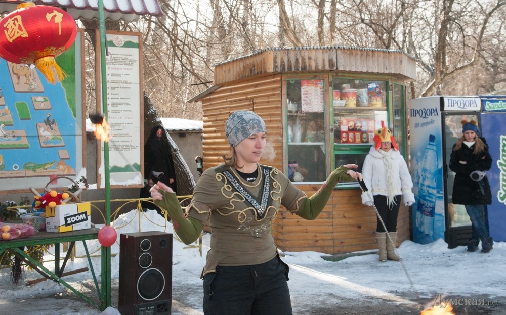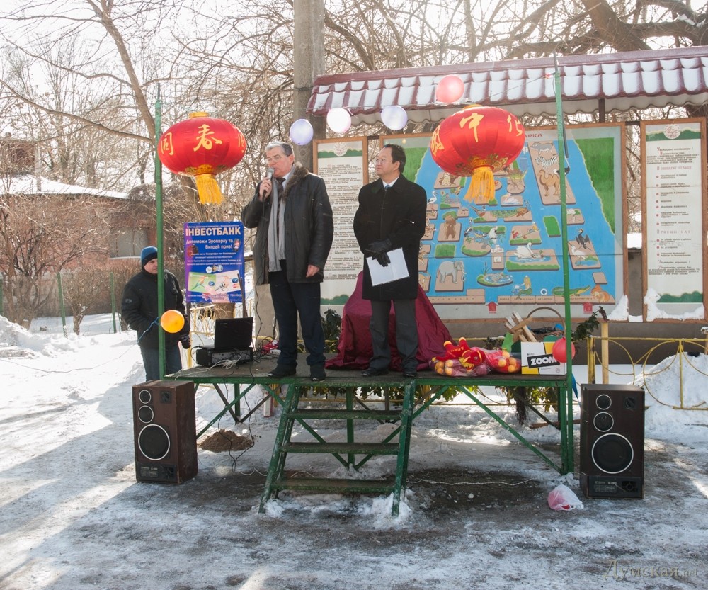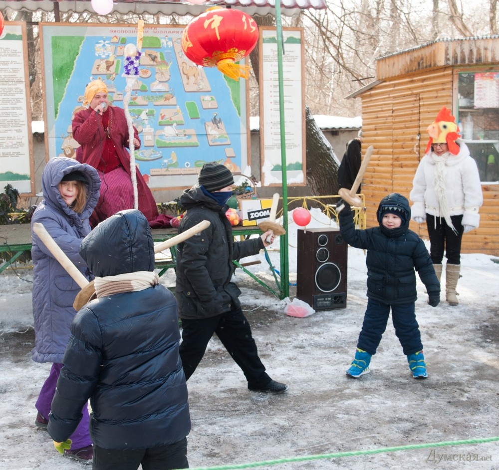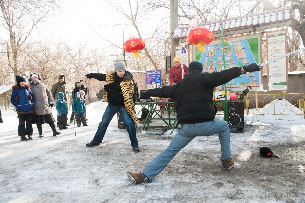 В одесском зоопарке отметили наступление Нового года по восточному календарю — года синей деревянной лошади. К этой дате руководство коммунального предприятия организовало праздник для детей и их родителей. Начался он вполне официально — на сцене выступили дипломаты. Китайский Генконсул одарил к лошадей зоопарка – вручил длинногривым сертификаты на сбрую. После него свои подарки выдали румынский посланник и представитель областной власти. А потом под традиционные китайские песни — традиционные китайские сюжеты. Тигр сражался на мечах с драконом. Правда, различить их можно было только по цвету курток. После оружие — игрушечные деревянные мечи — выдали самым маленьким зрителям. Победители сражения получили игрушечные лошадки. Далее было фаер-шоу, а затем по кругу пронесли козленка – символ следующего года. Козленок еще маленький, но к 19 февраля 2015-го (очередной китайский НГ) должен подрасти. В перерывах под корейский GANGNAM STYLE танцевала синяя лошадь. СМЕРТЬ РОСІЙСЬКИМ ОКУПАНТАМ! Помітили помилку? Виділяйте слова з помилкою та натискайте control-enter |