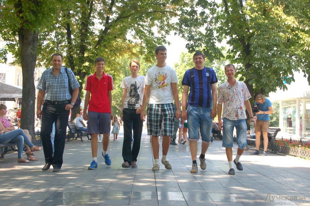 Клуб высоких людей, который появился в нашем городе летом прошлого года, провел свою очередную встречу. Инициаторами мероприятия стал основатель «клуба» киевлянин Андрей Соколов и самый высокий одессит Лев Китик. Встреча анонсировалась в социальных сетях и вызвала интерес не только тех, чей рост выше среднего, но также журналистов и даже зевак. Некоторые специально приехали к месту встречи, вооружившись табуретками для фотосессии. Главным пунктом программы, как и на всех подобных встречах, стало дружеское общение участников. «Иногда хочется просто прогуляться по городу и непринужденно болтать, не напрягаясь, в смысле — не нагибаясь», — поделился с корреспондентом «Думской» один из участников встречи ростом чуть выше двух метров. СМЕРТЬ РОСІЙСЬКИМ ОКУПАНТАМ! Помітили помилку? Виділяйте слова з помилкою та натискайте control-enter |