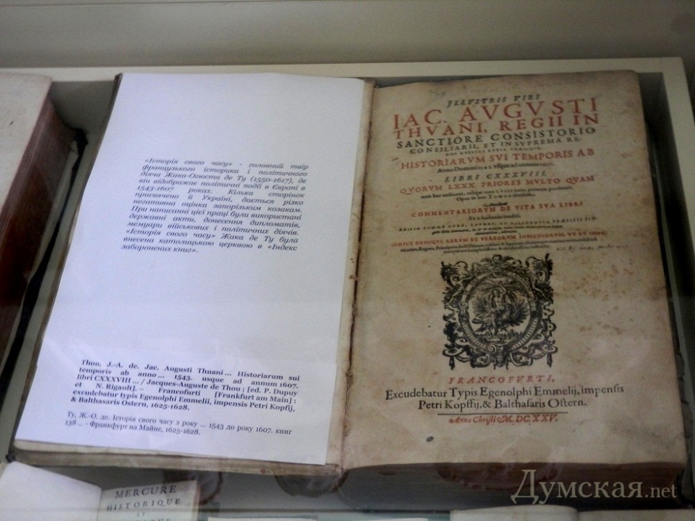 Одесская библиотека показала скандальную «Историю» французского гугенота и Библию, которая стоит 500 тысяч долларовВыставка старинных и редких книг проходит в научной библиотеке Одесского национального университета им. И.И. Мечникова. Она приурочена к 195-летию книжного собрания ОНУ. Как передает ваш корреспондент, посетители выставки могут ознакомиться с двумя тематическими экспозициями – «История Украины XVI-XVII вв.» и «Польские старопечатные издания». Все представленные раритеты хранятся в фондах библиотеки. По словам сотрудника отдела редких книг и рукописей «научки» Анны Великодной, из польских старопечатных книг самой ценной является «Надгробная речь, произнесенная Станиславом Ориховием … на погребении Сигизмунда Ягеллона, короля Польского» авторства известного польского богослова, публициста и историка XVI века Станислава Ожеховского (Ореховского). Этот труд был издан в Кракове в 1548-м году. Среди памятников кириллического книгопечатания всеобщее внимание на выставке традиционно привлекла «Острожская Библия» — первое печатное Писание на церковнославянском языке. Как известно, религиозная книга вышла из-под станка русского первопечатника Ивана Федорова в 1581-м году при поддержке князя Константина Острожского. Причем издана Библия была рекордным по тем временам тиражом 1000 экземпляров, из которых сохранилось полностью или частично 350. Одним из них располагает одесская библиотека: Новороссийский университет выкупил книгу в 1894 году. Отметим, что сегодня экземпляры «Острожской Библии» стоят просто неприличные деньги. Так, в 2007-м году продукт труда Федорова продали на аукционе «Сотбис» в Лондоне за полмиллиона долларов! Еще на выставке можно посмотреть печатную продукцию Киево-Печерской Лавры – этот религиозный комплекс в XVII веке являлся центром отечественного книгопечатания. Из книг с любопытной судьбой в научке ОНУ представлен экземпляр «Всемирной истории» французского поэта, писателя и историка кальвинистского вероисповедания Теодора Агриппы д’Обинье (1552-1630). «Эта книга полна ненависти к католицизму, ведь писал ее гугенот. В 1617-м году «Всемирную историю» приговорили к казни. Большую часть экземпляров сожгли на Гревской площади Парижа, где обычно убивали преступников из простонародья. С тех пор, труд д’Обинье стал библиографической редкостью. В «Истории» есть упоминание о запорожских казаках, к которым автор относится с большой симпатией», — отмечает сотрудница отдела редких книг. К слову, самая старая книга в фондах научной библиотеки нашего университета – это инкунабула (так называют издания, появившиеся на свет в первые 60 лет существования европейского книгопечатания – с 1440 по 1501-й годы), содержащая трактат средневекового юриста, учителя и друга Франческо Петрарки Джованни д’Андреа «О древах кровного родства, близости, а также о духовной связи». Этот труд был издан в 1476-м году в немецком Нюрнберге. Все представленные на выставке книги хранятся в специальных стеклянных стеллажах, оборудованных сигнализацией. В фонды и музей редкой книги они вернутся через месяц. СМЕРТЬ РОСІЙСЬКИМ ОКУПАНТАМ! Помітили помилку? Виділяйте слова з помилкою та натискайте control-enter Новини по цій темі: 17 серпня 2025: Продають мерч у залі Костанді, ховають Стародавній Єгипет у підвалах і виставляються в Німеччині: як виживаю