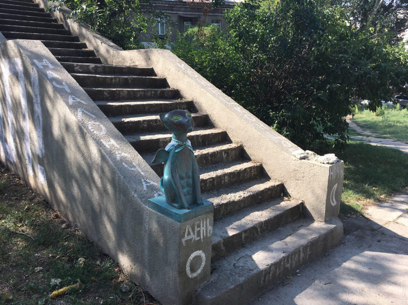 Все статуи, созданные в рамках проекта «Одесские коты», облачились сегодня в вышиванки. Эту акцию провели неизвестные патриоты, передает корреспондент «Думской». К сожалению, накануне одного из котов-сфинксов, установленных на Военном спуске, похитили. Полиция пытается найти воров и похищенного усатого. СМЕРТЬ РОСІЙСЬКИМ ОКУПАНТАМ! Помітили помилку? Виділяйте слова з помилкою та натискайте control-enter Новини по цій темі: 30 липня 2021: Изюм в тельняшке на берегу моря: на Ланжероне открыли еще один памятник одесскому котику (фото) 20 травня 2021: Вандалам вопреки: стеклянный кот Витражик в третий раз вернулся на свое место в парке Победы (фото) 13 квітня 2021: Одесские коты примерили весенние веночки (фото) 28 січня 2021: В парке Победы снова похитили витражного кота (фото) 16 листопада 2020: "Крестовик" Виталик добрался до одесских котов (фото) |