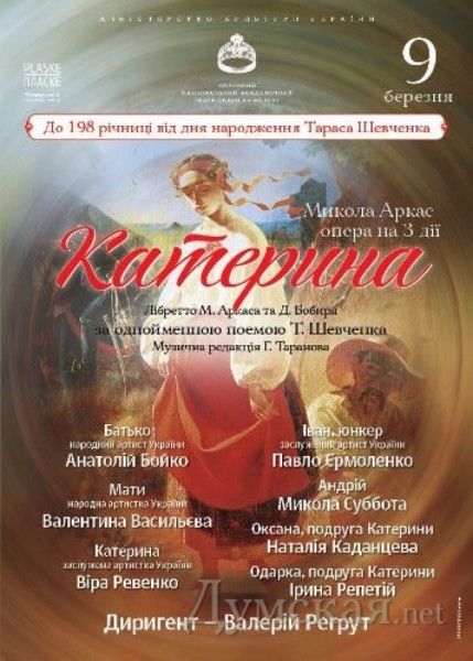 9 марта в одесской Опере покажут «Катерину» Николая Аркаса. Спектакль приурочен к 198-летию со дня рождения Тараса Шевченко.