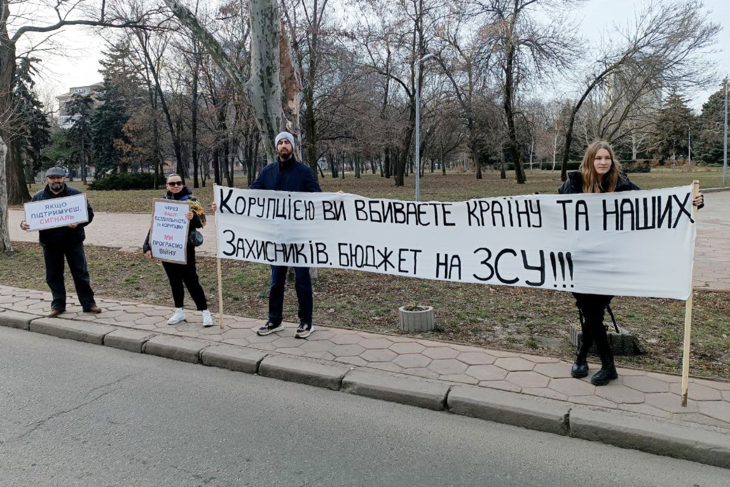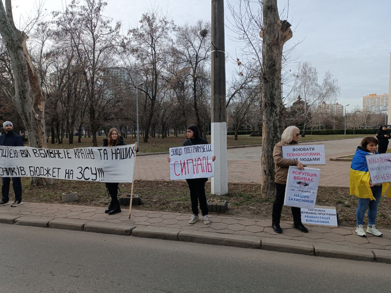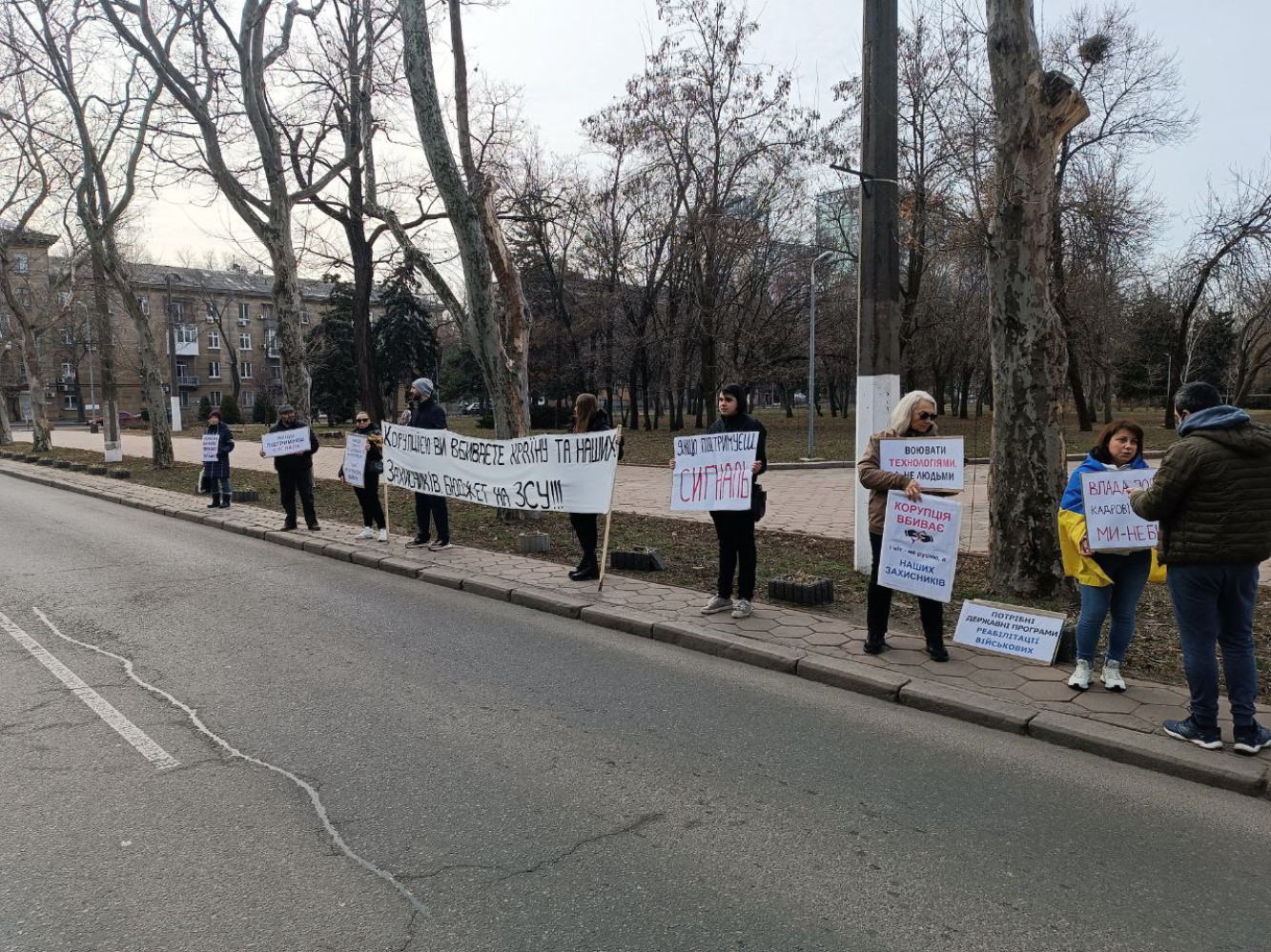 «Корупцією ви вбиваєте країну і наших захисників»: одесити пікетували обладміністраціюАкція проти корупції та неадекватних тендерів відбулася біля будівлі обласної адміністрації на проспекті Шевченка 11 лютого. У традиційному недільному мітингу взяло участь близько двох десятків людей, розповіли учасники групи «Чай біля ОДА». Пікетувальники тримали в руках плакати: «Корупцією ви вбиваєте країну і наших захисників», «Бюджет на ЗСУ», «Воювати технологіями, а не людьми», «Стоп фінансуванню ТБ марафонів та серіалів». Учасники акції також виступили з пропозицією до влади вести діалог із громадянами з приводу тих чи інших кадрових призначень. СМЕРТЬ РОСІЙСЬКИМ ОКУПАНТАМ! Помітили помилку? Виділяйте слова з помилкою та натискайте control-enter Новини по цій темі: 30 серпня 2025: Двісті відсотків прибутку на онкохворих: як лікарні Одеської області переплачують десятки тисяч за медичне обладнання 15 квітня 2025: Ямковий ремонт за 50 млн: в Одесі починають латати дороги, заробить і депутат-"слуга» 10 січня 2025: Тендер на організацію харчування в психлікарнях Одещини майже на 100 млн гривень виграла фірма, викрита в махінаціях 25 листопада 2024: Для відновлення зруйнованого окупантами житла: в Одеській області оголосили два найдорожчі тендери за тиждень 22 листопада 2024: В Одесі з 23 листопада перекриють узвіз Маринеско через ремонт |