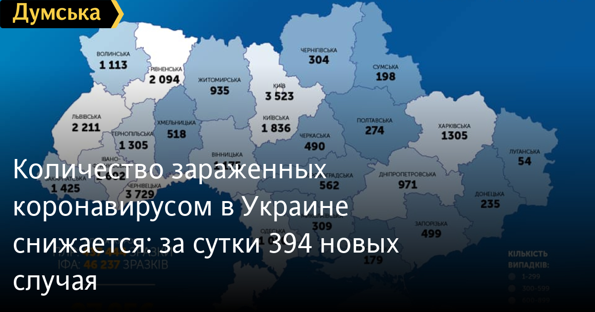 Количество зараженных коронавирусом в Украине снижается: за сутки 394 новых случаяПо состоянию на утро 9 июня в Украине лабораторно подтверждено 27 856 случаев заражения коронавирусной инфекцией. Об этом сообщила пресс-служба Центра общественного здоровья МОЗ. За минувшие сутки в стране зарегистрировано 394 новых случая заболевания. Всего на сегодняшний день в Украине от COVID-19 умерли 810 пациентов, а выздоровели 12 412 человек. Заболеваемость по областям: Винницкая – 1175 Волынская – 1113 Днепропетровская – 971 Донецкая – 235 Житомирская – 935 Закарпатская – 1425 Запорожская – 499 Ивано-Франковская – 1602 Кировоградская – 562 Киевская – 1836 Львовская – 2211 Луганская – 54 Николаевская – 309 Одесская – 1010 Полтавская – 274 Ровненская – 2094 Сумская 198 Тернопольская – 1305 Харьковская – 1305 Херсонская – 179 Хмельницкая – 518 Черновицкая – 3729 Черкасская – 490 Черниговская – 304 Киев — 3523 СМЕРТЬ РОССИЙСКИМ ОККУПАНТАМ! Заметили ошибку? Выделяйте слова с ошибкой и нажимайте control-enter Новости по этой теме: 4 марта 2023: "Вакцини-довгожителі", або Як щеплення проти COVID-19 перетворилися в Україні на небезпечний ритуал 27 января 2023: МОЗ обязали опубликовать договоры на закупку вакцин против COVID-19: апелляционный суд удовлетворил иск журналиста "Думской" 11 января 2023: За неделю в Одессе зафиксировано 159 случаев ковида 4 января 2023: За неделю в Одессе зарегистрировано 113 случаев ковида |
