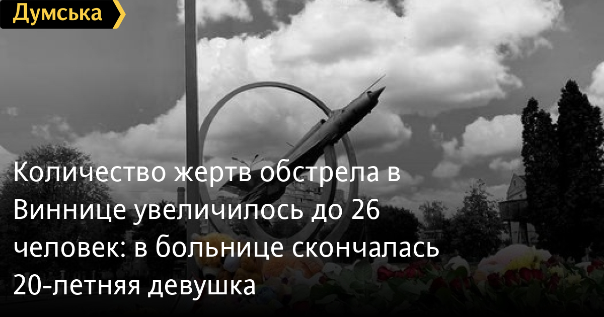 Кількість жертв обстрілу в Вінниці збільшилась до 26 осіб: в лікарні померла 20-річна дівчинаВозросло количество жертв обстрела российскими нацистами центра Винницы — в больнице скончалась 20-летняя Ольга Лысенко. Как сообщил глава Винницкой областной военной администрации Сергей Борзов, в день трагедии она была на площади Победы в 10:40, возвращалась домой от стоматолога. В результате обстрела и последующего пожара девушка получила 98% ожогов тела. Напомним, оккупанты нанесли ракетный удар по центру Винницы утром 14 июля. Ракеты попали в офисное здание, также пострадал Дом офицеров и расположенные рядом жилые дома. На месте прилетов возник пожар, который перекинулся на автостоянку. В результате пострадало около 50 машин. СМЕРТЬ РОСІЙСЬКИМ ОКУПАНТАМ! Помітили помилку? Виділяйте слова з помилкою та натискайте control-enter |