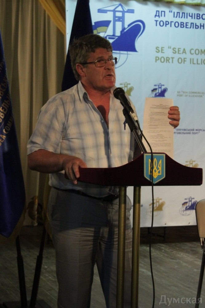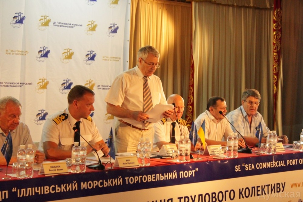Председателю профсоюзного комитета порта Брызгалову С.А. обратиться от имени трудового коллектива порта в Окружной административный суд города Киева с исковым заявлением об обжаловании действий Министерства инфраструктуры Украины по организации подготовки и проведения конкурса на замещение вакантной должности директора ГП «Ильичевский морской торговый порт» (в связи с грубым нарушением действующего законодательства Украины при формировании состава конкурсной комиссии). При этом направить в Окружной административный суд города Киева заявление об обеспечении исковых требований о запрете в судебном порядке Министерству инфраструктуры Украины проведения конкурсного отбора на замещение вакантной должности директора ГП «Ильичевский морской торговый порт» до решения дела судом по существу», — говорится в протоколе.