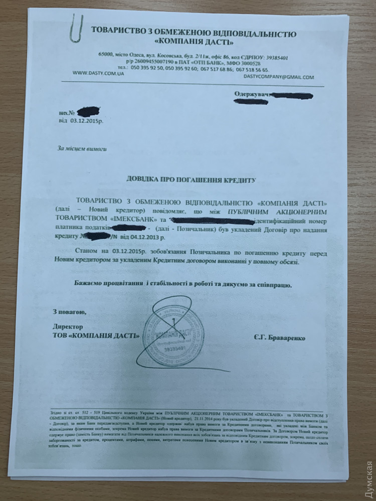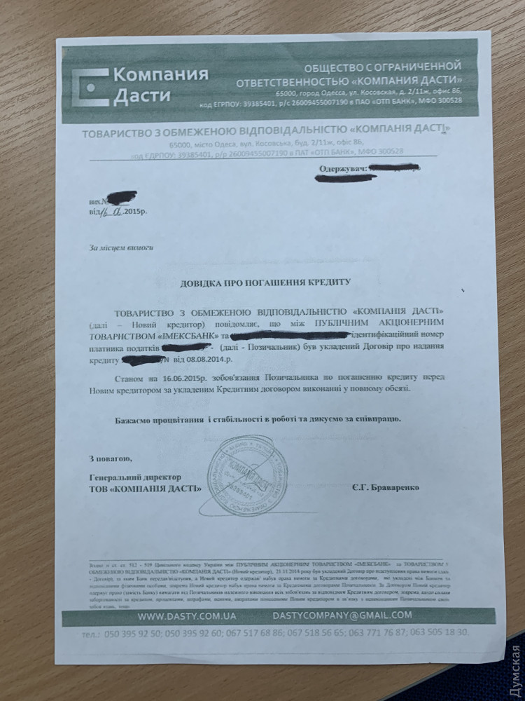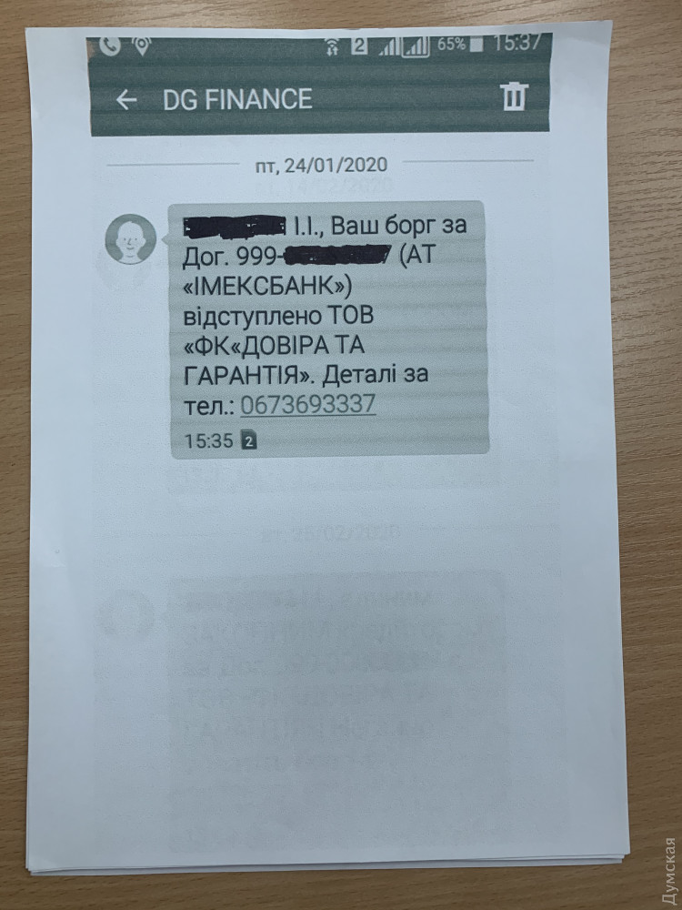 Коллекторы «кошмарят» заемщиков лопнувшего одесского банка, которые уже рассчитались по кредитамЗаемщики обанкротившегося «Имэксбанка» экс-нардепа Леонида Климова получают странные SMS c требованиями погасить долги по уже закрытым кредитным договорам. Некая киевская компания ООО «ФК »Доверие и гарантия» якобы заключила договор с Фондом гарантирования вкладов физических лиц и выкупила портфель кредитных договоров банка на сумму более 300 миллионов гривен. Как сообщил «Думской» представитель заемщиков Игорь Бордиян, людей заставляют платить по второму разу: они уже рассчитались по своим кредитам перед компанией «Дасти». Этой фирме передали право требовать выплаты по кредитам в конце 2014 года после объявления «Имэксбанка» банкротом. На сегодняшний день жертвами аферы могут стать 23 тысячи человек со всей Украины, от которых требуют повторно заплатить от тысячи до 120 тысяч гривен. «Погасили кредиты, спали спокойно до 2020 года, как вдруг У людей есть на руках справки о погашении кредита», — говорит Игорь Бордиян. Адвокат заемщиков Евгений Гареев рассказал, что договор между компанией «Дасти» и «Имэксбанком» был признан судом недействительным, после чего Фонд гарантирования вкладов повторно перепродал долг компании «ФК «Доверие и гарантия». «Юридическую силу или правовых последствий SMS не несут. Это — моральное давление, стандартные действия коллекторов, — говорит адвокат. По словам Гареева, если дело дойдет до суда, у заемщиков есть все шансы выиграть. А в случае прихода коллекторов с подмогой в спортивной форме и требованием платить деньги, нужно вызывать полицию, поскольку взысканием могут заниматься только государственные исполнители. По словам Игоря Бордияна, некоторые заемщики уже получили угрозы с неизвестного номера. Заемщики на сегодняшний день объединяются и намерены совместными усилиями противостоять коллекторам. ООО «Финансовая компания «Доверие и гарантия» учредили киевлянин Сергей Деминский и ООО «Доверие и гарантия» (также управляется и учреждена Александром Правником и Сергеем Деминским). По данным аналитической системы YouControl, ООО «Дасти» связана с группой компаний «Приморье» Леонида Климова. Единственным учредителем фирмы является гражданин Азербайджана Гусейнов Эльнур Зульфали Оглы, а директором выступает Петр Дельный. По словам заемщиков, компания «пустая», все деньги из нее выведены, а значит вернуть заплаченные по кредитам суммы не представляется возможным. Мало того, по словам юристов, такое обращение в суд лишь добавит коллекторам аргументов на случай новой тяжбы. Мол, заемщик своим иском к «Дасти» косвенно подтвердит, что компания получила деньги незаконно. Напомним, «Имэксбанк» Леонида Климова был отнесен к категории неплатежеспособных в начале 2015 года. Общая его задолженность перед кредиторами и вкладчиками превышает 12 миллиардов гривен. Деньги были выведены из финучреждения путем раздачи кредитов подконтрольным тому же Леониду Климову юридическим лицам. Позже их перебросили в офшоры. Бывшего председателя правления АО «Имэксбанк» Юрия Граматика подозревают в растрате финансовых средств. Он объявлен в розыск. Сейчас Фонд гарантирования вкладов пытается продать головное здание «Имэксбанка» на проспекте Гагарина и принадлежащий Климову стадион «Черноморец» в парке Шевченко.