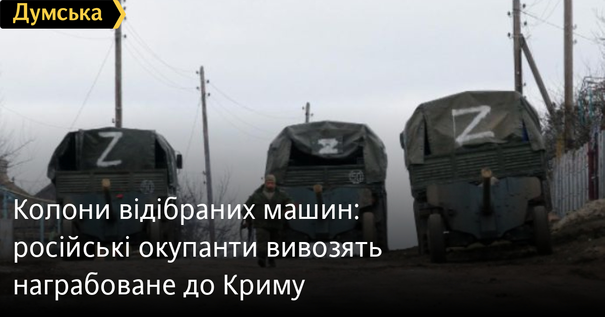 Колони відібраних машин: російські окупанти вивозять награбоване до КримуКілька районів зосередження російських військ на території Херсонської області вразили Сили оборони України 12-13 березня, внаслідок чого вороги зазнали великих втрат. Через це посилили режимні заходи в окупованих населених пунктах, а 14 березня зафіксовано рух колони російських загарбників у бік Криму. Про це повідомляє Генштаб Збройних сил України у вечірньому зведенні. Зазначається, що окупанти найчастіше переміщуються на цивільних автомобілях, відібраних у мирних жителів, і перевозять із собою награбоване майно. «В іншому населеному пункті Херсонської області противник проводить контрдиверсійні заходи. Виправдовуючи свої дії, окупанти звинувачують жителів села у вбивстві російського військового, тіло якого було знайдено», — йдеться у повідомленні. СМЕРТЬ РОСІЙСЬКИМ ОКУПАНТАМ! Помітили помилку? Виділяйте слова з помилкою та натискайте control-enter |