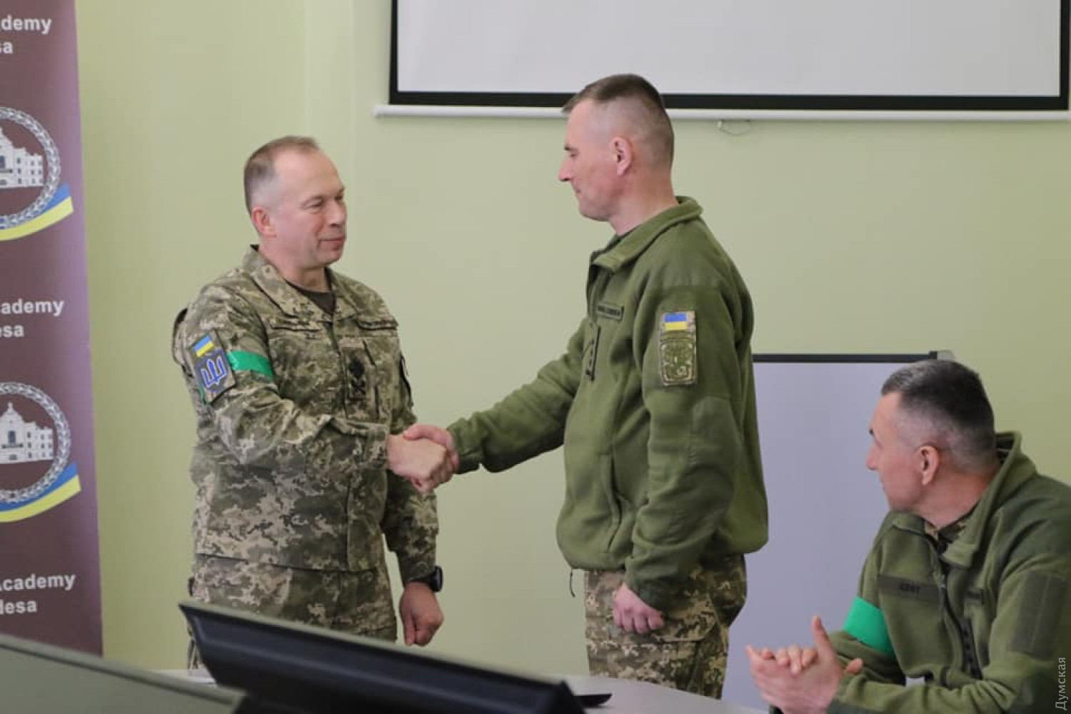 Командующий сухопутными войсками Вооруженных сил Украины генерал-полковник Александр Сирский прибыл с рабочим визитом в Одессу. В Генеральном штабе Вооруженных сил Украины сообщили, что Сирский представил личному составу нового начальника Военной академии Одессы – полковника Алексея Шевченко. Ранее этот офицер занимал должность первого заместителя начальника Национальной академии сухопутных войск имени гетмана Сагайдачного (Львов). После этого командующий посетил 411-й военный клинический госпиталь, где сейчас проходят лечение воины, получившие ранения на фронте. Более 20 раненых солдат и офицеров получили от Сирского награды за проявленные мужество и героизм при защите Родины. СМЕРТЬ РОСІЙСЬКИМ ОКУПАНТАМ! Помітили помилку? Виділяйте слова з помилкою та натискайте control-enter |
