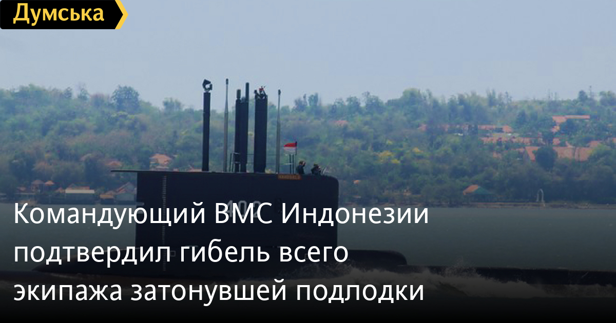 Все 53 члена экипажа п одводной лодки Военно-морских сил Индонезии, затонувшей 21 апреля в районе острова Бали, признаны погибшими. С таким заявлением на пресс-конференции выступил командующий ВМС Юдо Маргоно. В рамках встречи с журналистами, общественности продемонстрировали вещи, найденные в районе предположительной гибели субмарины. Среди предметов — молитвенные коврики членов экипажа, детали торпедного аппарата и емкость с горюче-смазочными материалами «Имея достоверные доказательства, которые мы обнаружили, мы переводим подлодку из статуса «потерянная» в статус «затонувшая», — отметил Маргоно. Напомним, связь с подводной лодкой пропала во время учений — экипаж должен был доложить о результатах пуска учебных торпед, однако сеанс связи не состоялся. Глубины в районе аварии достигают 700 метров. Субмарина Naggala с бортовым номером 402 была построена в Германии в 1981 году по проекту 209, модернизирована в 2011. Длина 60 метров, подводное водоизмещение 1390 тонн. Скорость подводная 22 узла, надводная 11 узлов. Предельная глубина погружения 500 метров. СМЕРТЬ РОССИЙСКИМ ОККУПАНТАМ! Заметили ошибку? Выделяйте слова с ошибкой и нажимайте control-enter |