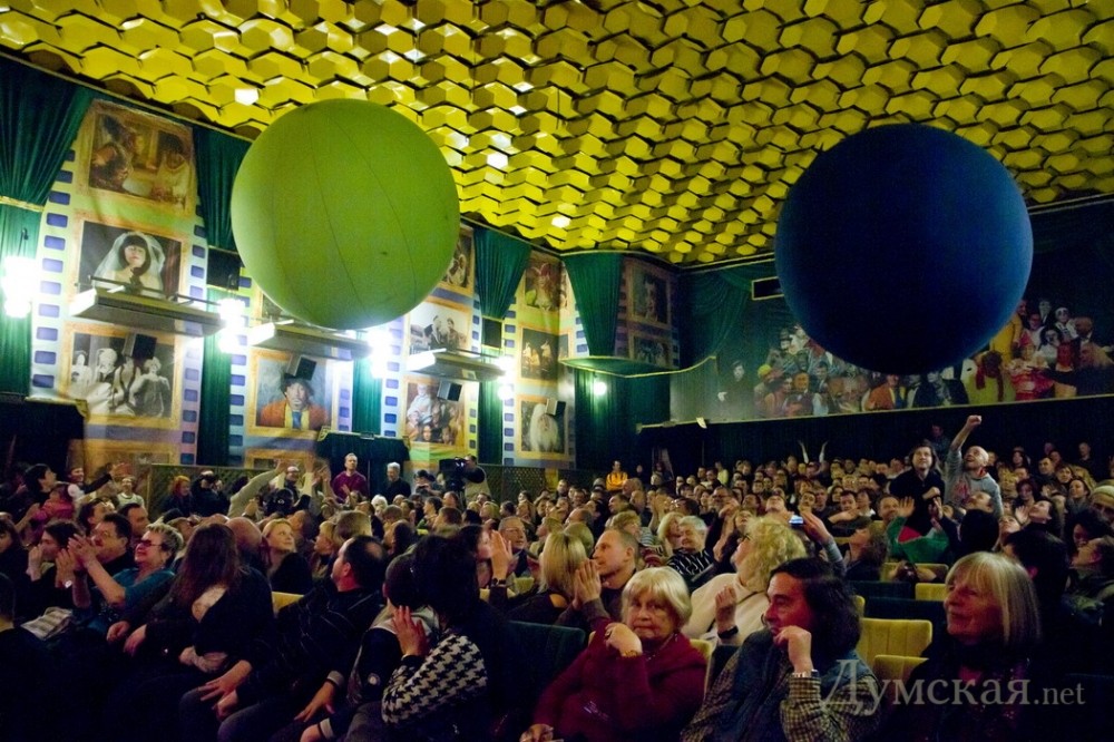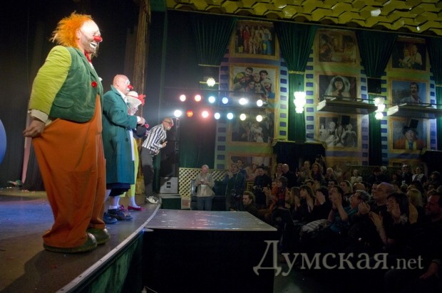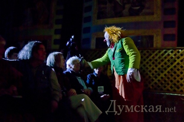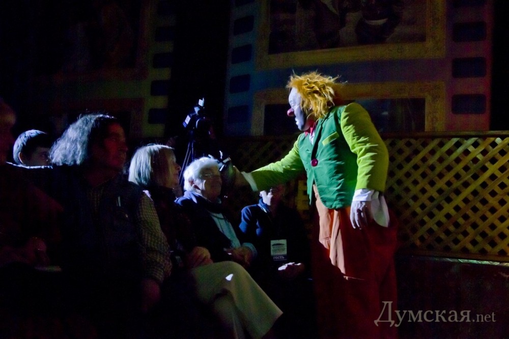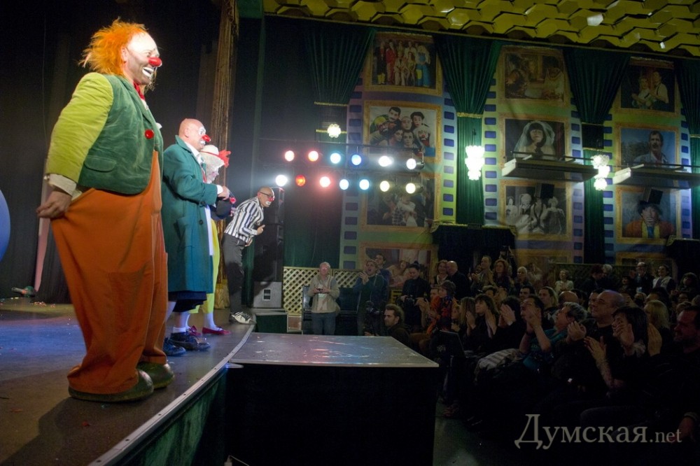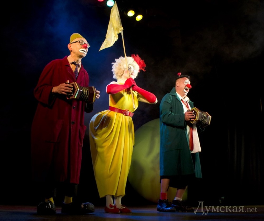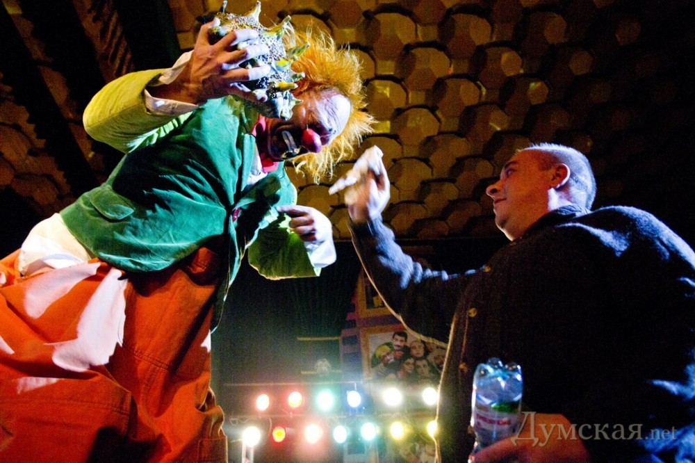 Вчера в Одессе открылся второй международный фестиваль клоунов «Комедиада». В этом году фест начался с выступления «Лицедеев». Легендарный коллектив родом из Питера привез спектакль «Покатуха». Актеры театра смешили публику своими лучшими мим-сценами. А зрителям в первом ряду приходилось не только смотреть на «Лицедеев, но и участвовать в выступлении, вовлекаясь в игру клоунов, спускавшихся со сцены в зал. Для остального зала в финале был приготовлен волейбол огромными надувными шарами. Напомним, что из театра «Лицедеи» вышли такие известные комики как Вячеслав Полунин и Георгий Делиев. СМЕРТЬ РОСІЙСЬКИМ ОКУПАНТАМ! Помітили помилку? Виділяйте слова з помилкою та натискайте control-enter