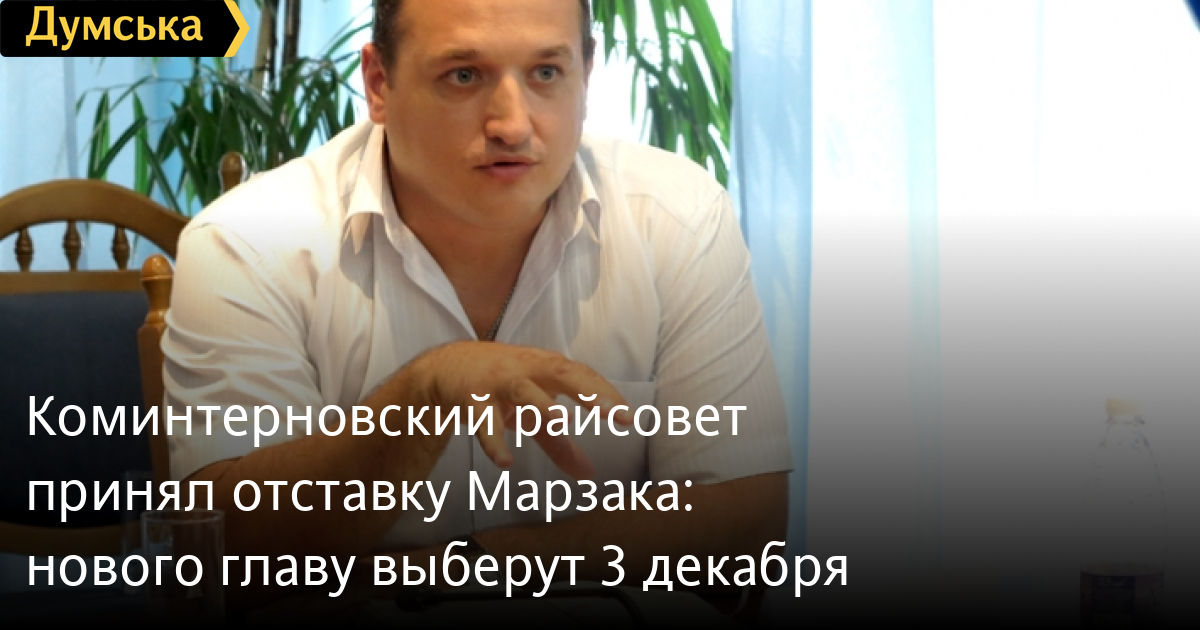 Коминтерновский райсовет принял отставку Марзака: нового главу выберут 3 декабряКоминтерновский районный совет сегодня принял отставку председателя Коминтерновского райсовета, бывшего регионала Ивана Марзака, написавшего заявление под давлением евромайдановцев. Нового главу выберут третьего декабря. «Я сам сегодня утром сложил полномочия. В виду последних событий присутствуют вооруженные люди в районе. Мы решили избавить их от необходимости бороться о мной, чтобы они направили свою энергию на благо Украине и не отвлекались на Коминтерновский район», – цитирует Марзака издание «Трасса Е-95». Напомним, 25 ноября депутаты Коминтерновского районного совета Одесской области созвали и провели очередную сессию, вопреки распоряжению главы совета о ее переносе на неопределенный срок. Присутствующие рассмотрели специальное предложение депутата Олега Бушина: провести внеочередную сессию, на которой рассмотреть вопрос о недоверии И.Марзаку в качестве главы районного совета. Присутствовавшие поддержали это решение единогласно. «Я уже не говорю об одиозной славе Марзака, но если он не может или не хочет исполнять свои обязанности, он должен уйти», – заявил депутат. Помимо этого, Марзака обвиняют в подвозе «титушек» на Антимайдан и в преступлениях против активистов Евромайдана. СМЕРТЬ РОССИЙСКИМ ОККУПАНТАМ! Заметили ошибку? Выделяйте слова с ошибкой и нажимайте control-enter |
