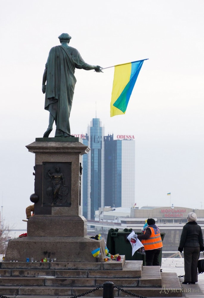 Коммунальщики очистили территорию у Дюка от последствий акции в память о Небесной сотне: флаг герцогу оставили (фотофакт)Одесские коммунальщики убрали свечи, лампадки и фотографии Небесной сотни, которые принесли одесситы к подножию Дюка 20 февраля. При этом украинский флаг, который участники акции вложили в руку де Ришелье, дворники забирать не стали. СМЕРТЬ РОСІЙСЬКИМ ОКУПАНТАМ! Помітили помилку? Виділяйте слова з помилкою та натискайте control-enter |