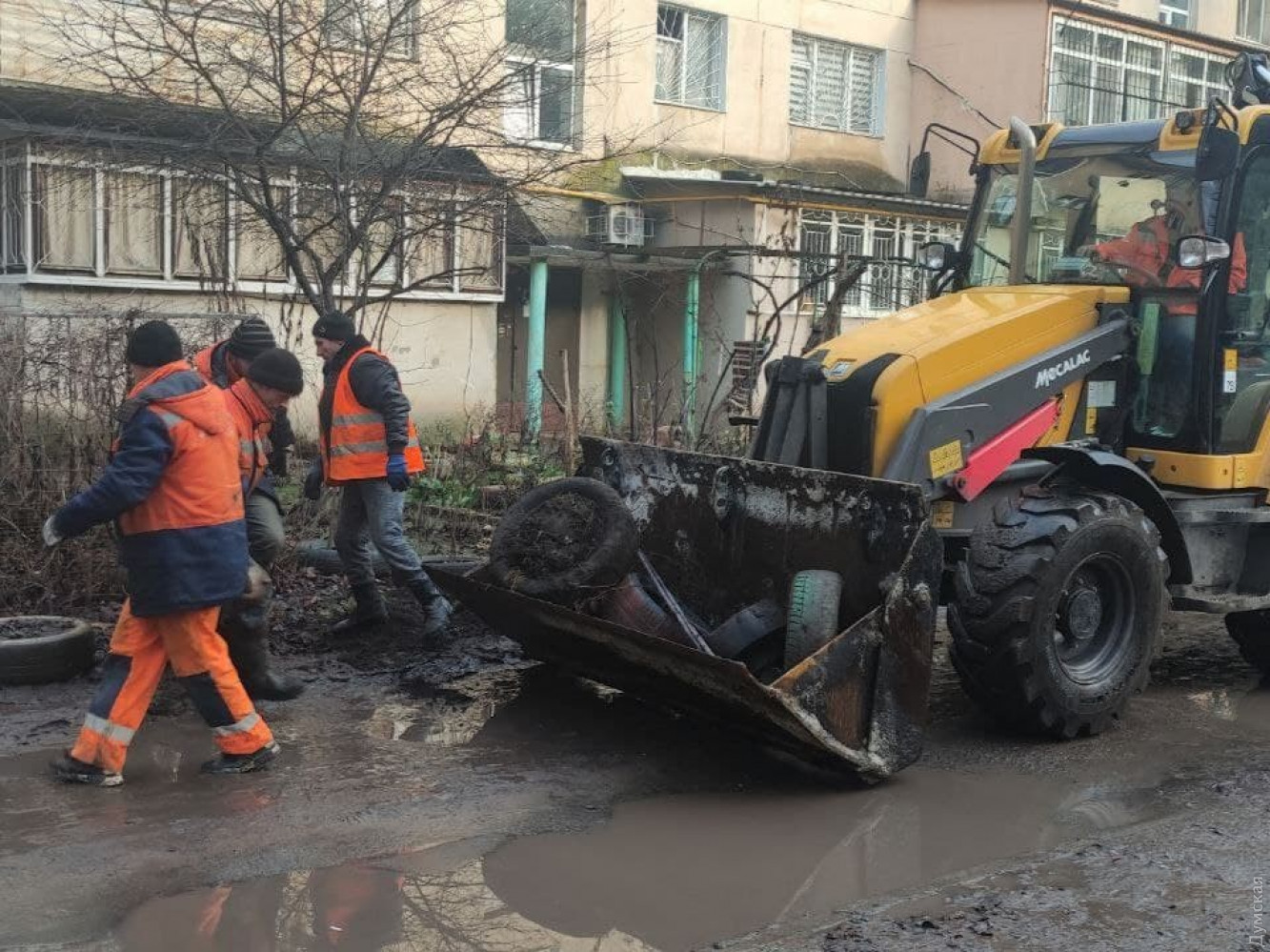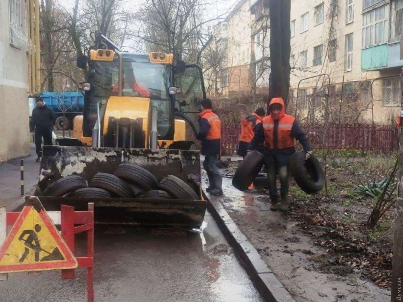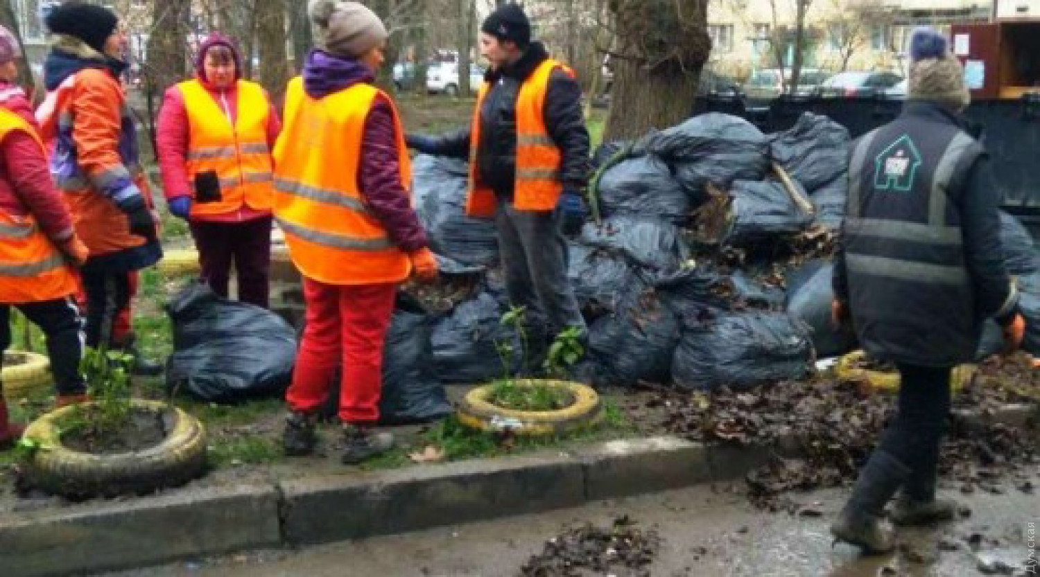 Коммунальщики освобождают одесские дворы от старых автомобильных шин