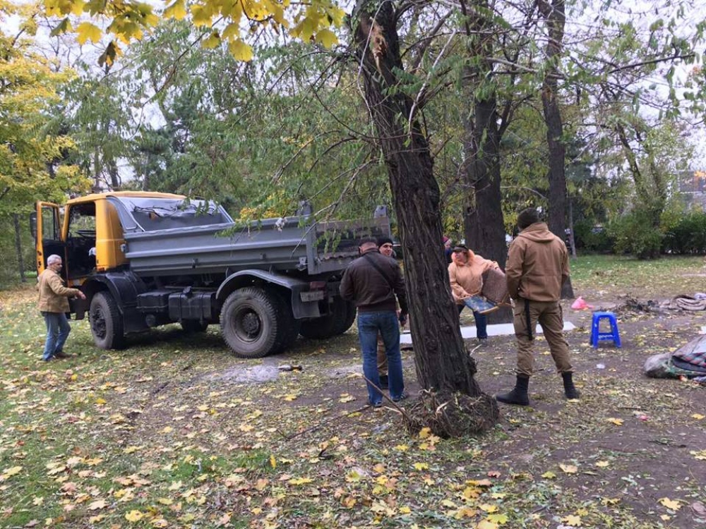 Сегодня, 2 ноября, сотрудники ЖКС «Фонтанский» и КП «Городские дороги» вывезли палатки и вещи лиц без определенного места жительства, которые с недавних пор разместились на Куликовом поле.