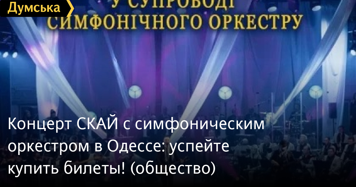 Концерт СКАЙ із симфонічним оркестром в Одесі: встигніть купити квитки! (суспільство)Гурт СКАЙ 16 лютого виступить в Одеському оперному театрі під акомпанемент симфонічного оркестру. Організатори заходу нагадують, що у поціновувачів якісної української музики ще є можливість придбати квитки на цей незабутній захід. Обрати місця та купити квитки можна за посиланням. На гостей вечора чекають незабутні емоції, неймовірна атмосфера та нове звучання всім відомих хітів. Абсолютно нове, неймовірне шоу з унікальним для України світлом і звуком! Помітили помилку? Виділяйте слова з помилкою та натискайте control-enter |