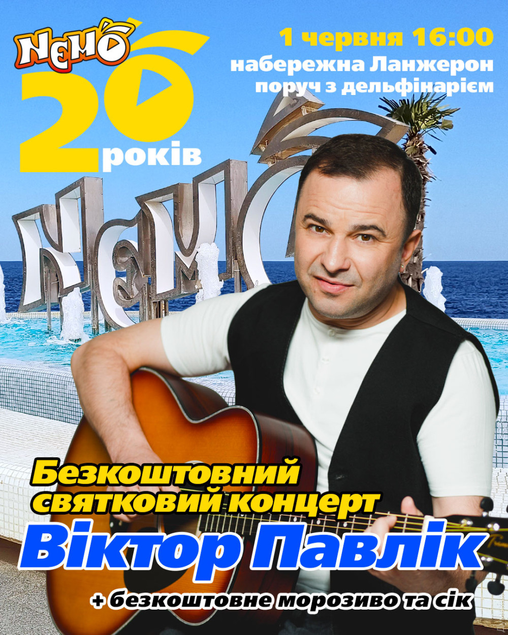Концерт Віктора Павліка та свято для всієї родини: одеський дельфінарій NEMO відсвяткує 20-річчя (на правах реклами)1 червня на набережній Ланжерон одеський дельфінарій NEMO святкуватиме свій 20-річний ювілей. Цього року NEMO готує безкоштовну святкову програму для дітей і дорослих, яскраве шоу за участю зірок та приємні сюрпризи для всіх гостей. Родзинкою святкування стане виступ народного артиста України Віктора Павліка, який подарує глядачам незабутній концерт. Ведучі свята — відомий одеський шоумен Руслан Костов та Олена Костова. Святкування розпочнеться о 16:00. Першими на сцену вийдуть харизматичні аніматори з Animation Team NEMO, які подарують дітям море веселощів. Продовжать програму захопливі танцювальні та вокальні виступи. Також гостей чекають смачні подарунки — безкоштовне морозиво та сік. О 18:00 — перерва, під час якої всі охочі зможуть відвідати шоу з дельфінами, морськими котиками та левами в дельфінарії. Для дітей до 14 років діє акційна пропозиція — знижка 50% на квитки на виставу (акційна ціна 200 грн, замість 400 грн для дітей до 14 років діятиме з 28.05 (з 15:00) по 06.06 включно). Вже о 19:00 — продовження програми, яку прикрасить виступ учасників популярного YouTube-проєкту «ШГШ – Школа глазами школьника». Цей молодіжний формат поєднує гумор, креатив і живий погляд на шкільне життя, тож фінал вечора обіцяє бути яскравим та веселим! Одеситів та гостей міста чекають на набережній Ланжерон, поруч з Дельфінарієм 1 червня о 16:00. Вхід на святкову програму — безкоштовний. СМЕРТЬ РОСІЙСЬКИМ ОКУПАНТАМ! Помітили помилку? Виділяйте слова з помилкою та натискайте control-enter |