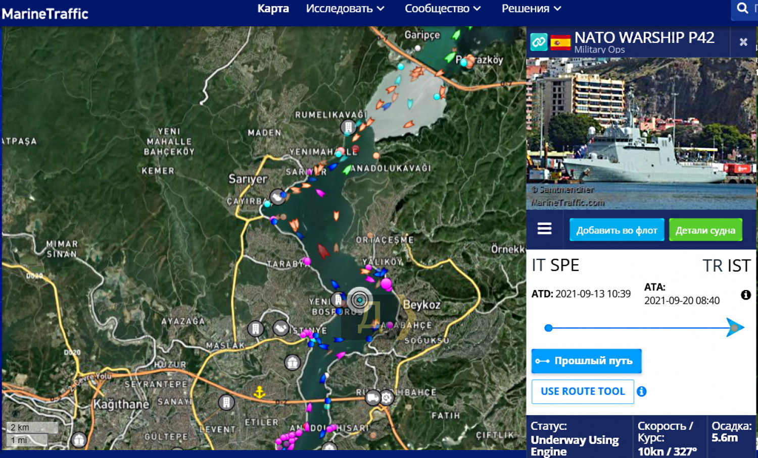 Вторая противоминная группа НАТО вошла в Черное море. Испанский тральщик P42 Rayo, турецкий M260 Edincik, а также итальянский 5559 Viareggio покинули стамбульскую бухту Золотой Рог и, пройдя Босфором, в 18:30 вошли в черноморские воды. К группе должны присоединиться корабли болгарских и румынских ВМС для маневров и совместного патрулирования. Возможно, корабли НАТО вместе с ВМСУ примут участие в международных учениях «Объединенные усилия — 2021». Напомним, 20 сентября группа прибыла в порт Стамбула для отдыха и пополнения запасов. Флагманом группы сейчас является испанский тральщик ESPS Rayo P42, а командиром SNMCMG2 — капитан Хавьер Нуньес де Апарисио. Фото Yörük Işık СМЕРТЬ РОСІЙСЬКИМ ОКУПАНТАМ! Помітили помилку? Виділяйте слова з помилкою та натискайте control-enter |