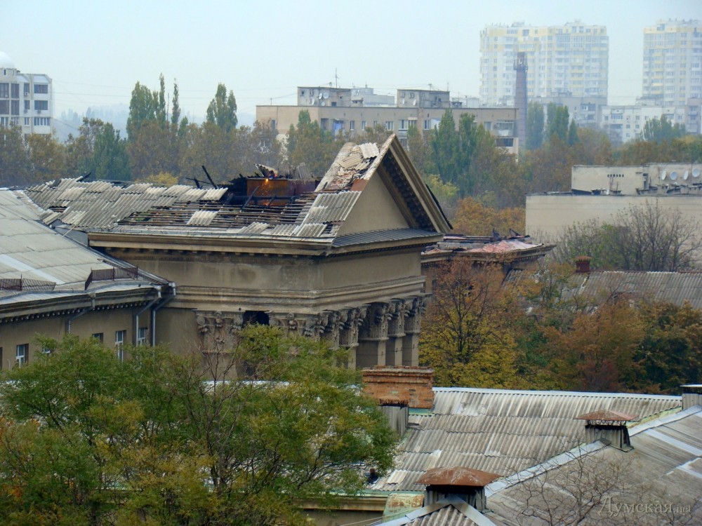 В Одессе восстанавливают крышу неоднократно горевшего корпуса бывшего факультета тыла института сухопутных войск (а еще раньше — ОВВКИУ ПВО).