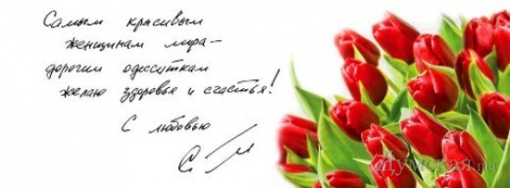 «Милые одесситки! Каждая из вас – жемчужинка у моря! Яркая и блистательная! Только у одесситок волосы пахнут морем, в глазах – сияние южного солнца, а в душе – всегда весна.Только вам по силам провести корабль жизни сквозь бурные волны в тихую гавань любви, благополучия и счастья. Пусть исполняются все ваши мечты!», -говорится в обращении.