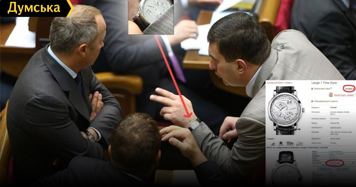 Лидер партии «Родина» Игорь Марков, лишенный мандата по решению Высшего административного суда Украины, пришел во вторник в сессионный зал парламента с наручными часами стоимостью 50-60 тысяч долларов. Об этом на своей страничке в Facebook пишет киевский фотограф Влад Содель. Он утверждает, что у политика — часы известной торговой марки A. Lange & Sohne (модель Lange 1 Time Zone). А вот Нестор Шуфрич, с которым на фото беседует Марков, «засветил» более скромный аксессуар – фотограф оценил его Franck Muller Cintree Curvex максимум в $10 тысяч. Напомним, в недавнем интервью Марков, комментируя информацию о том, что он якобы формировал в парламенте группу депутатов, обещая им за солидарность по 30 тысяч, сказал: «Я не такой богатый человек, чтобы платить такие деньги». В пролом году политик, будучи еще кандидатом в нардепы, носил на встречи с избирателями часы за 20 тысяч долларов. СМЕРТЬ РОСІЙСЬКИМ ОКУПАНТАМ! Помітили помилку? Виділяйте слова з помилкою та натискайте control-enter