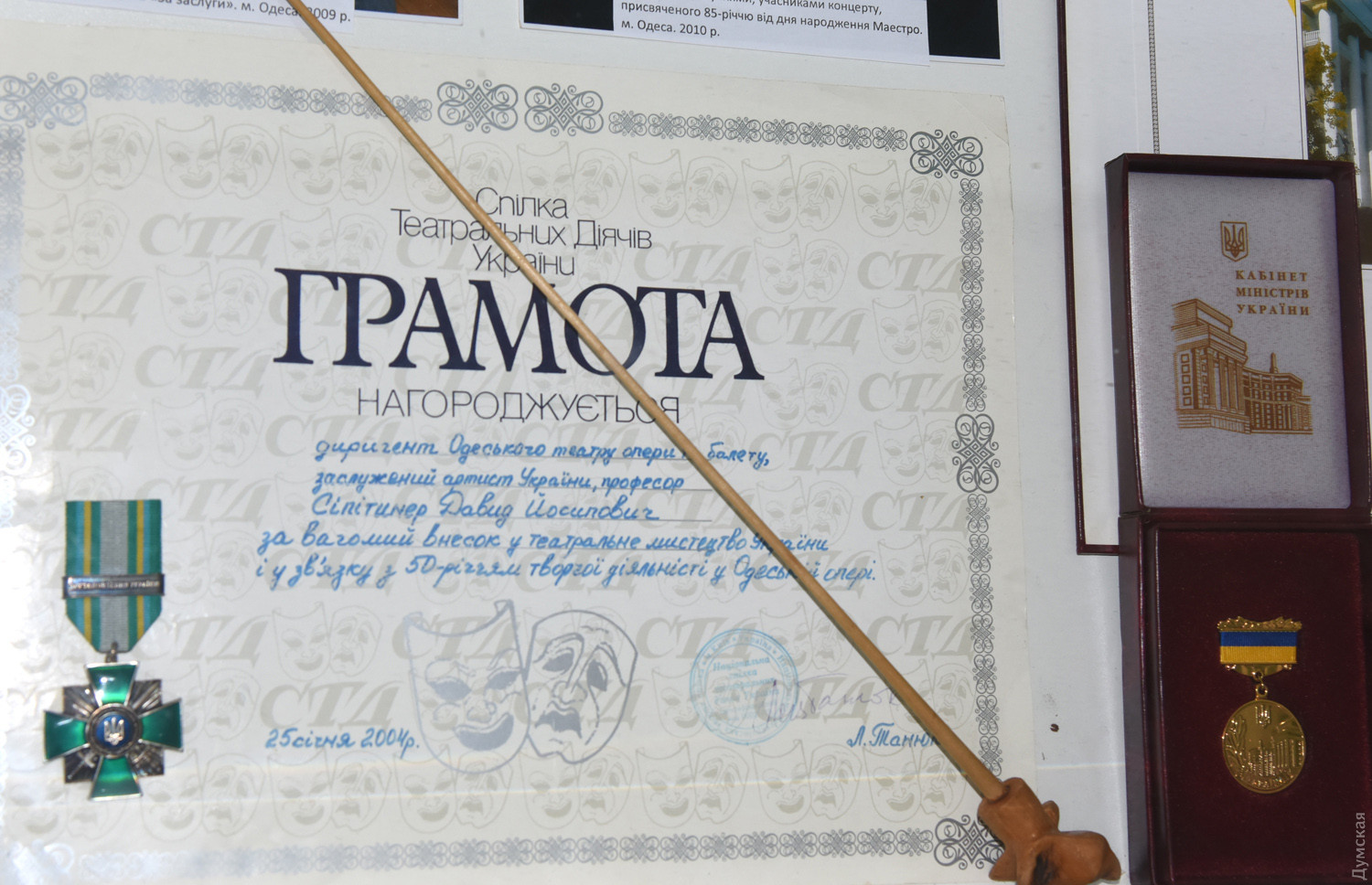До конца лета в одном из залов Одесского историко-краеведческого музея (Гаванная, 4) можно увидеть выставку, посвященную памяти дирижера Давида Сипитинера (21.01.1925 – 4.03.2011). Будущий музыкант появился на свет в семье одесских врачей, которые мечтали о том, чтобы Додик пошел по их стопам. Предки семьи носили фамилию Шепотенер — они жили в местечке Шепотень близ Кишинева. Отец – известный терапевт, мать – детский отоларинголог, а сын уже в детском саду стал дирижировать шумовым оркестром малышей. «Решающим стало слово любимой мудрейшей бабушки Ханы Боруховны: «Эти родители ничего не понимают в своем ребенке, Давид родился музыкантом и будет им!» — рассказывает концертмейстер Одесской национальной музыкальной академии Ирина Баранова, которой Сипитинер стал вторым отцом. – А дядя, Борис Иосифович, сказал: «Ребята, этот мальчик не должен ковыряться в анатомке, он хочет играть на скрипке!» Первые скрипичные уроки Давид получил в классе Ефима Портного. Когда родители побоялись отпустить мальчика на учебу в Москву, на чем настаивал профессор Московской консерватории Абрам Ямпольский, ребенок впал в депрессию и чуть было не бросил скрипку. Но бабушка отвела талантливого внука к знаменитому Петру Столярскому, и это определило дальнейшую судьбу вундеркинда». Дирижерскую специальность Сипитинер приобрел уже после войны, окончив Ленинградскую консерваторию. Однако любовь к Одессе пересилила все искушения больших городов. Более полувека Давид Осипович проработал в Одесской опере, был частым гостем за пультом симфонического оркестра филармонии. Оркестранты оперы даже написали о нем шутливо-ревнивое стихотворение: За дирижерским пультом Дядя! Он дирижирует, не глядя, Балеты, оперы, симфонии. Вот в театре он, Вот в филармонии… Давид Осипович и правда знал многие партитуры наизусть. В экспозиции выставки есть ноты, переписанные им от руки. Счастье в семейной жизни он обрел, женившись на оперной певице Антонине Ивановой. Супруги много спорили о музыке. Соседи даже говорили: «Если у Сипитинеров тихо – их нет дома»), но жили очень дружно и счастливо. Красавица-жена проходила с ним многие партии, позднее Антонина Ильинична руководила народной студией во Дворце моряков, и часто на концерты надевала любимую розовую шляпку, которая раньше помогала ей создать незабываемый образ Кэт в опере «Чио-Чио-Сан». Партия Кэт небольшая, но внешний эффект помогал публике ощутить всю безнадежность соперничества с этой женщиной за руку и сердце офицера Пинкертона – едва увидев американскую жену своего возлюбленного, гейша Чио-Чио-Сан начинает подготовку к суициду… А крестик для партии Иоланты приходилось постоянно реставрировать, подклеивая стразики, ведь в советское время такие украшения не продавались. Остальная бижутерия, особенно чешская, играла на сцене роль бриллиантов. Заведующие музейными отделами Оксана Кривохатская и Лилия Эзау благодарны Ирине Константиновне за подаренный музею архив и предоставленные для выставки материалы. Вероятно, время проведения экспозиции будет продлено, а память о Сипитинере останется с Одессой навсегда. Автор Ирэн — Адлер, фото Александра Синельникова СМЕРТЬ РОСІЙСЬКИМ ОКУПАНТАМ! Помітили помилку? Виділяйте слова з помилкою та натискайте control-enter |