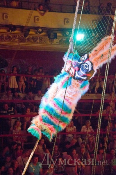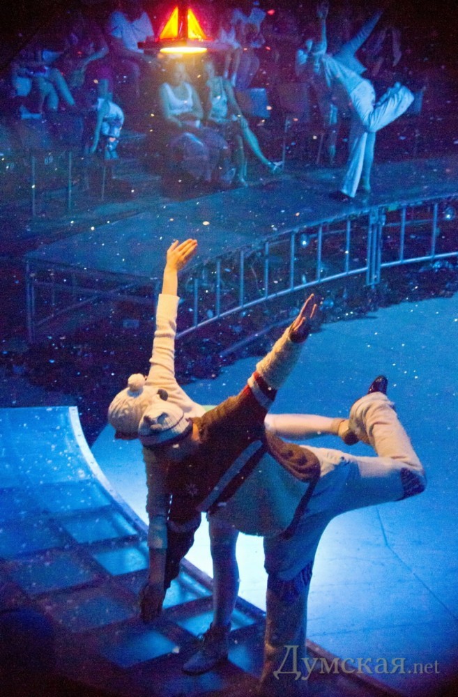 На летние гастроли в Одессу приехал самый молодой и экстравагантный российский цирк Кракатук. Визуально средний возраст труппы около 25 лет. Артисты привезли с собой около 100 тонн декораций, костюмов и спецэффектов. В их числе надувной батут на весь манеж и озеро из пены. Одесситам предложена шоу-постановка «Щелкунчик». Помимо всевозможных акробатических номеров артисты включили в программу всевозможные огненные спецэффекты. «Щелкунчик» с элементами музыки Чайковского это и забавные зайцы в африканских масках, и традиционные трюки, и даже новый жанр кибер-панк. Щелкунчик получает голову из 4-х экранов, показывающих один большой глаз, а мыши с горящими красными глазами прыгают под куполом цирка и изображают настоящих охотников, похищая пару зрителей в неизвестном направлении. Страшилки сменяются романтикой и вот уже близок хэппи-энд – Щелкунчик и Мэри встречаются в бумажном кораблике, парящем над головами зрителей. Фото Николай Вдовенко СМЕРТЬ РОСІЙСЬКИМ ОКУПАНТАМ! Помітили помилку? Виділяйте слова з помилкою та натискайте control-enter |