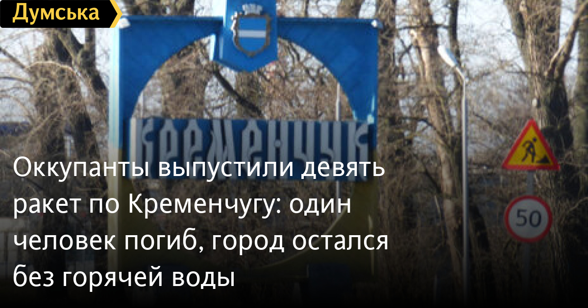 Оккупанты выпустили девять ракет по Кременчугу: один человек погиб, город остался без горячей водыВечером 24 апреля российские войска нанесли девять ракетных ударов по Кременчугу Полтавской области. Об этом сообщил глава местной военной администрации Дмитрий Лунин. Он отметил, что это самый большой обстрел области за время полномасштабного российского вторжения. Ракеты ударили по Кременчугской ТЭЦ и по Кременчугскому НПЗ. «К сожалению, один человек погиб, семь человек пострадали, у них ранения разной степени тяжести. Есть значительные разрушения зданий, но все пожары локализованы. Почти во всех районах города из-за обстрела ТЭЦ нет горячей воды», — уточнил Лунин. СМЕРТЬ РОССИЙСКИМ ОККУПАНТАМ! Заметили ошибку? Выделяйте слова с ошибкой и нажимайте control-enter |