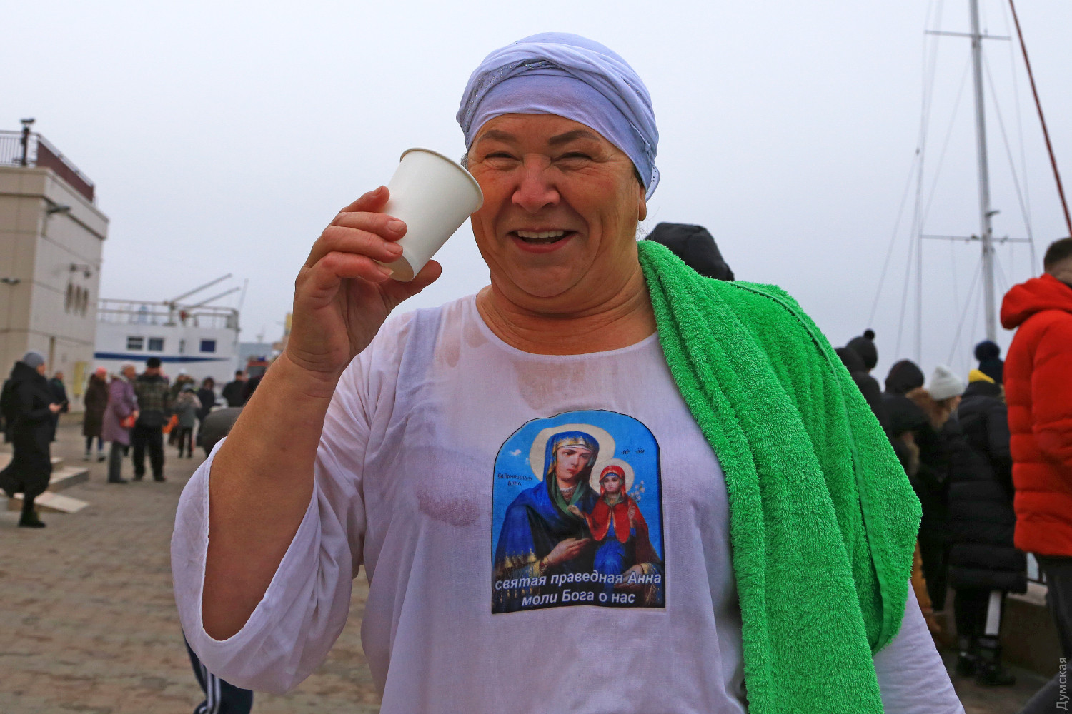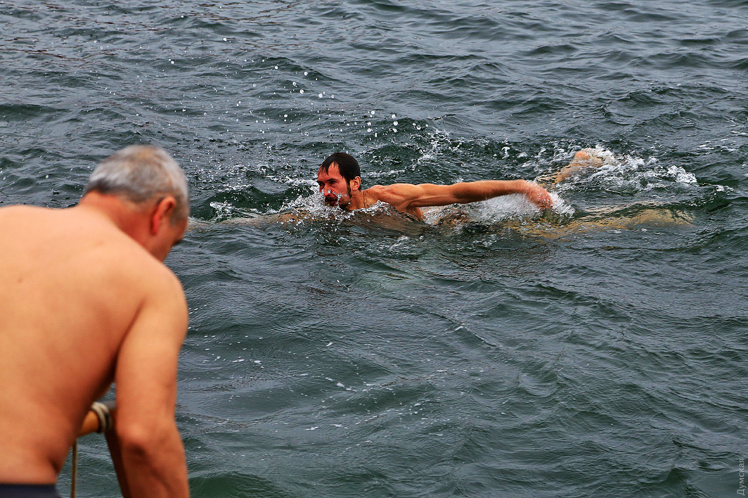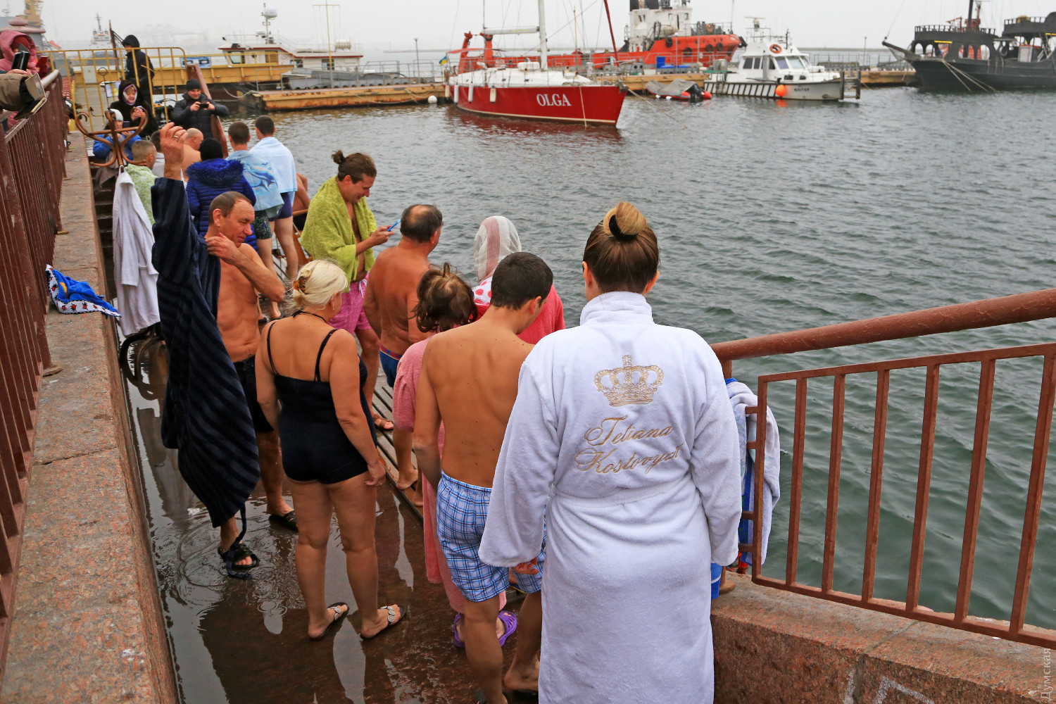 Промозглая погода не помешала одесситам устроить крещенские купания на морском вокзале.
