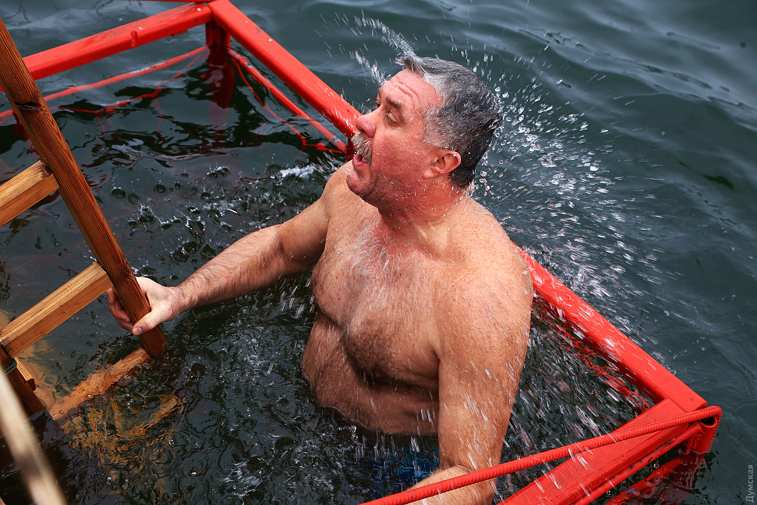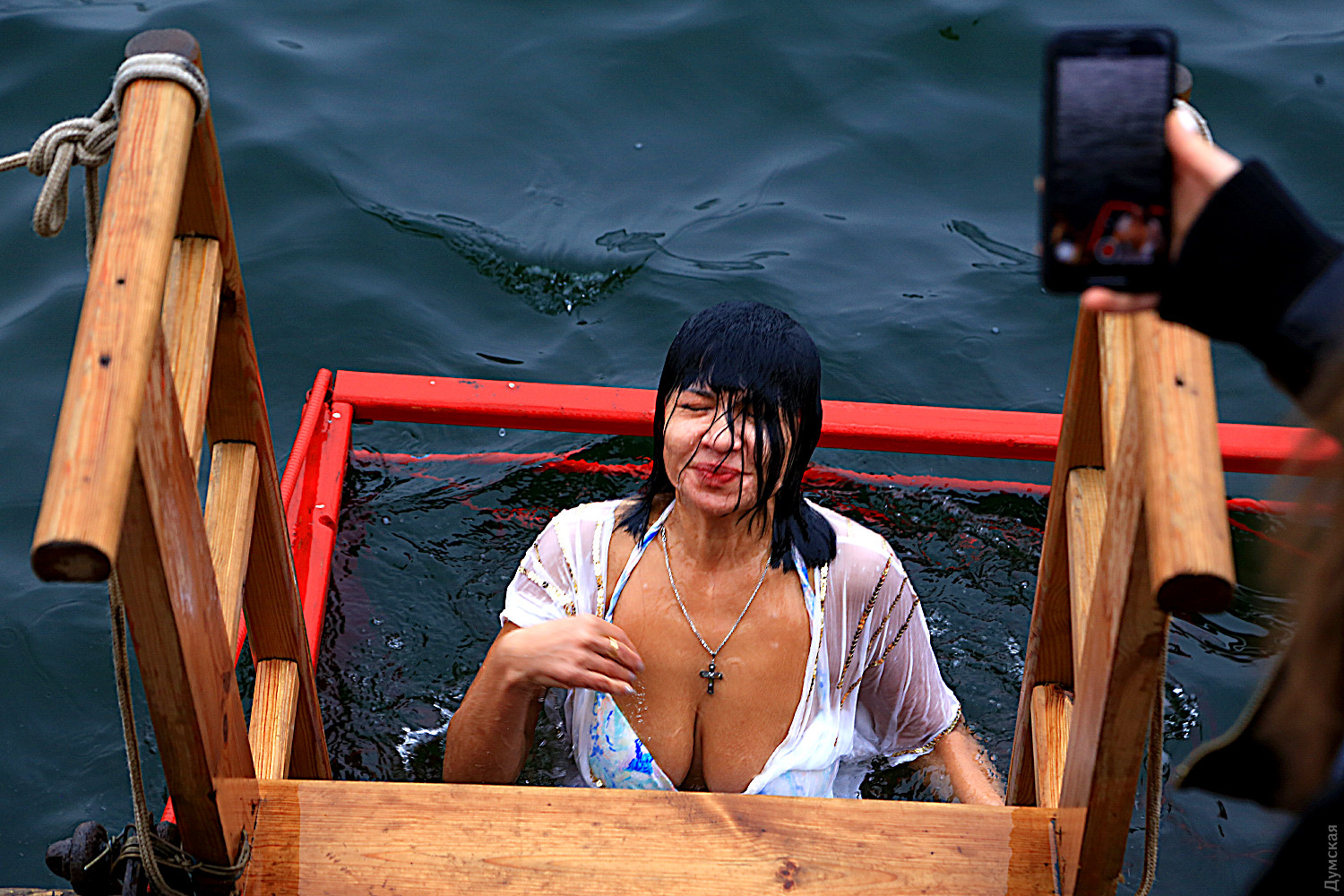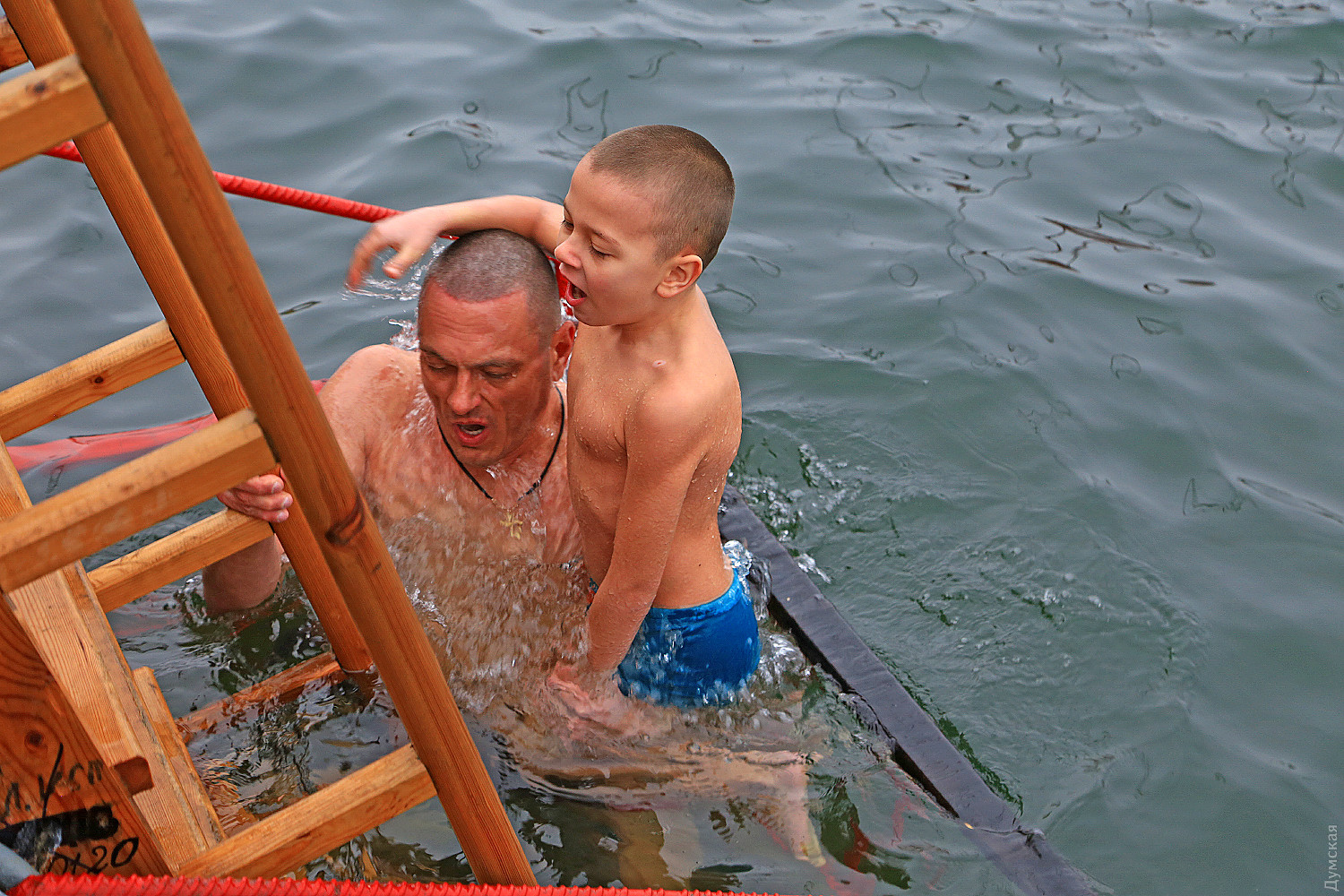 Промозглая погода не помешала одесситам устроить крещенские купания на морском вокзале.