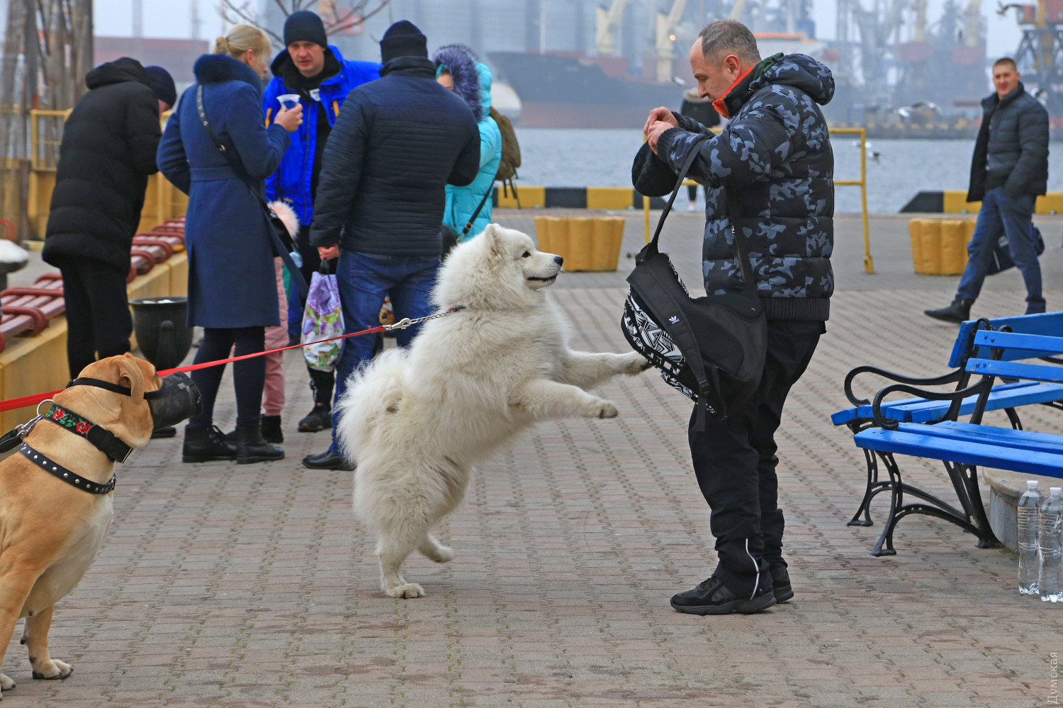 Некоторые дамы пришли со своими собачками, но в море их, к счастью, не окунали: животные дожидались хозяек на причале.