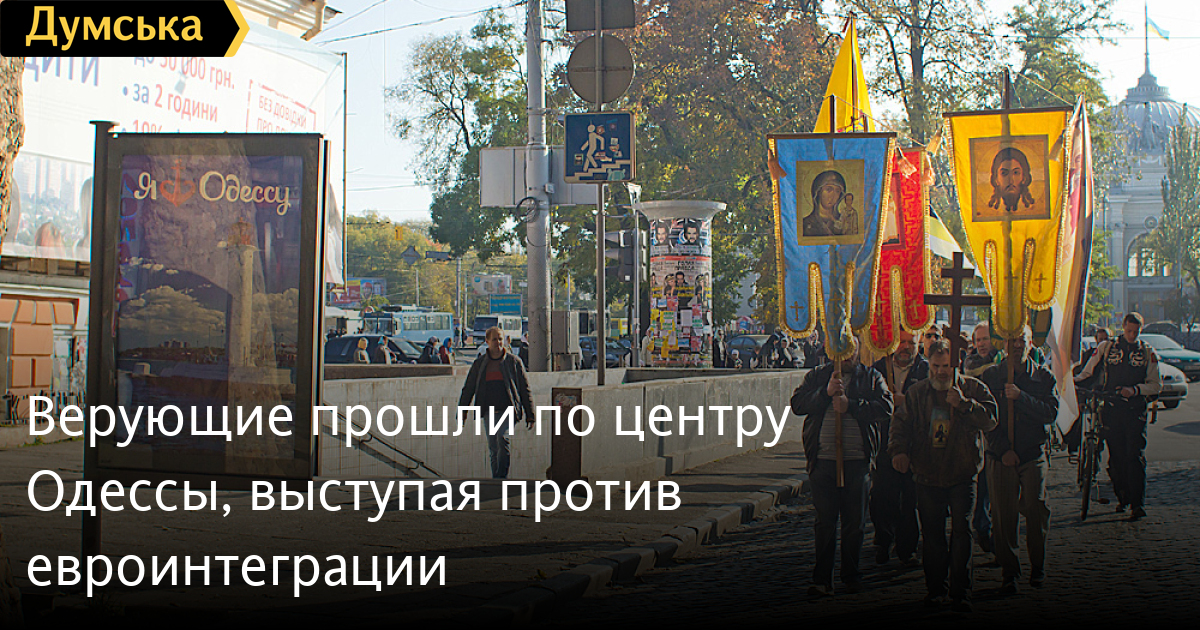 Несколько десятков православных верующих в воскресенье прошли крестным ходом от Куликового поля до Екатерининской площади. Как передает корреспондент «Думской», формально шествие было приурочено к празднику Покров Пресвятой Богородицы. Однако на мероприятии также проводили сбор подписей против ассоциации с Евросоюзом. Участники хода раздавали листовки, в которых говорится: «Сегодня, как и 400 лет назад, наше Отечество опять в опасности. Страну готовят к сдаче и оккупации западным евросодомом». Инструкция о том, как бороться с этой напастью, содержалась в другой агитке. Для этого рекомендуется…срочно отправить две телеграммы «с категорическим нет Евросоюзу» — одну на имя митрополита Бориспольского Антония, а вторую Президенту Украины Виктору Януковичу. «Европа испокон веков несла только войны и насаждала католицизма. Они хотят, чтобы мы выполняли все европейские законы: об однополых браках, об эвтаназии, ювенальной юстиции и всю остальную мерзость. Естественно, православная общественность против», — заявил один из участников крестного хода, представившийся рабом божьим Сергеем. СМЕРТЬ РОССИЙСКИМ ОККУПАНТАМ! Заметили ошибку? Выделяйте слова с ошибкой и нажимайте control-enter |
