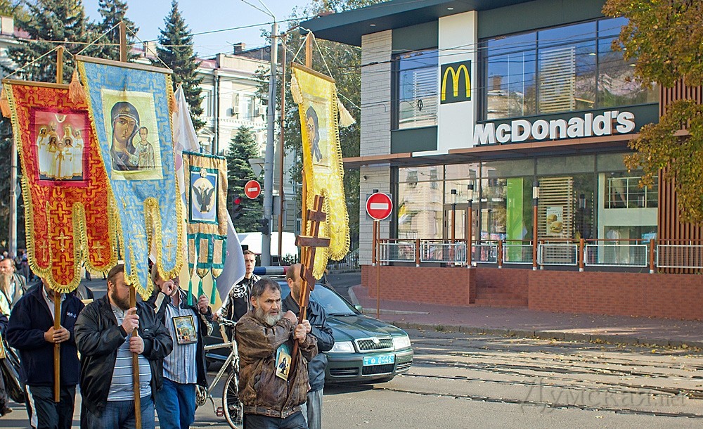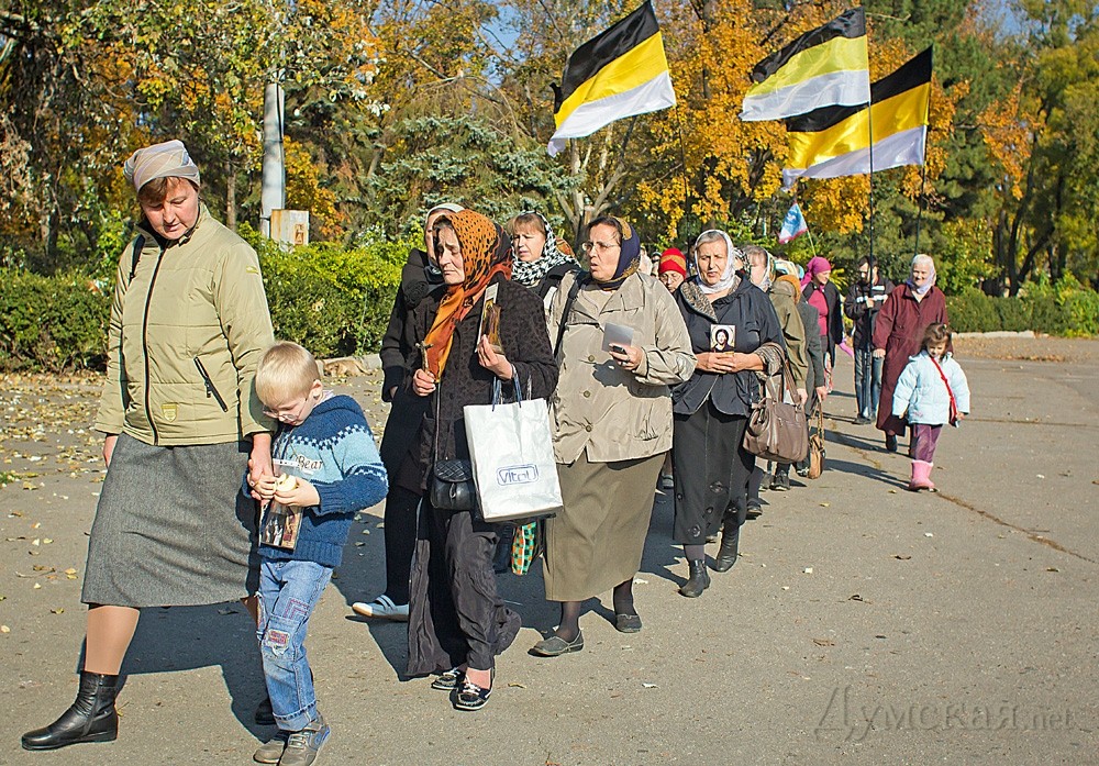 Несколько десятков православных верующих в воскресенье прошли крестным ходом от Куликового поля до Екатерининской площади. Как передает корреспондент «Думской», формально шествие было приурочено к празднику Покров Пресвятой Богородицы. Однако на мероприятии также проводили сбор подписей против ассоциации с Евросоюзом. Участники хода раздавали листовки, в которых говорится: «Сегодня, как и 400 лет назад, наше Отечество опять в опасности. Страну готовят к сдаче и оккупации западным евросодомом». Инструкция о том, как бороться с этой напастью, содержалась в другой агитке. Для этого рекомендуется…срочно отправить две телеграммы «с категорическим нет Евросоюзу» — одну на имя митрополита Бориспольского Антония, а вторую Президенту Украины Виктору Януковичу. «Европа испокон веков несла только войны и насаждала католицизма. Они хотят, чтобы мы выполняли все европейские законы: об однополых браках, об эвтаназии, ювенальной юстиции и всю остальную мерзость. Естественно, православная общественность против», — заявил один из участников крестного хода, представившийся рабом божьим Сергеем. СМЕРТЬ РОСІЙСЬКИМ ОКУПАНТАМ! Помітили помилку? Виділяйте слова з помилкою та натискайте control-enter |
